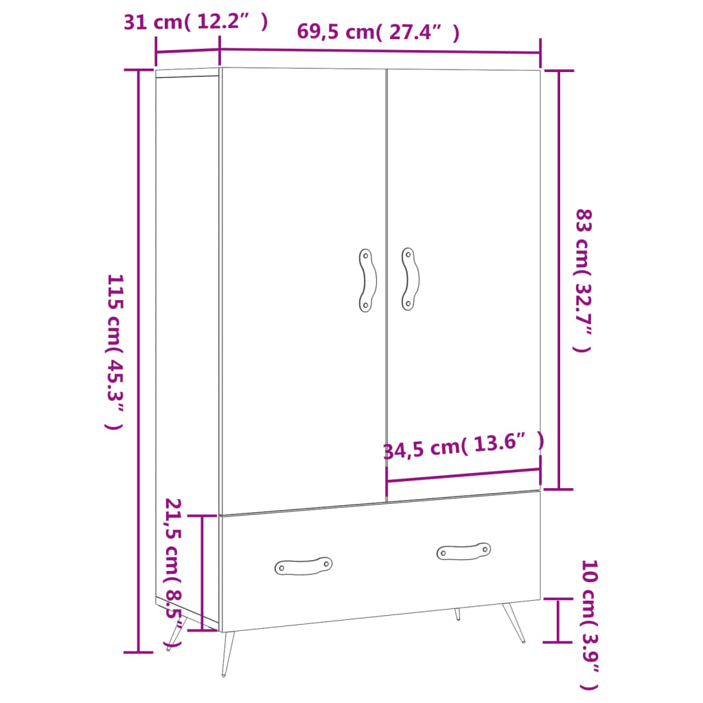 Ali iščete stilsko visoko omaro? Ta visoka komoda doda moderen čar vašim notranjim prostorom! Vzdržljiv material: Inženirski les se ponaša z izjemno kakovostjo, gladko površino ter močjo, stabilnostjo in odpornostjo na vlago. Kovinske noge: Kovinske noge vašim notranjim prostorom dodajajo moderen in uglajen slog, hkrati pa zagotavljajo stabilnost. Veliko prostora za shranjevanje: V stranski omarici je dovolj prostora za shranjevanje, da bodo različne vsakodnevne potrebščine dobro urejene in dosegljive. Stabilna in trpežna površina: Površina omarice za shranjevanje je kot nalašč za razstavljanje okrasnih predmetov, okvirjev za slike in lončnic. Praktična zasnova: Poskrbite, da bodo vaše potrebščine zaščitene pred prahom, tako da jih skrijete za vrata. Poleg tega ročaji olajšajo odpiranje stranske omarice. Opozorilo:Za preprečitev prevračanja je treba ta izdelek uporabiti s priloženo napravo za pritrditev na steno.