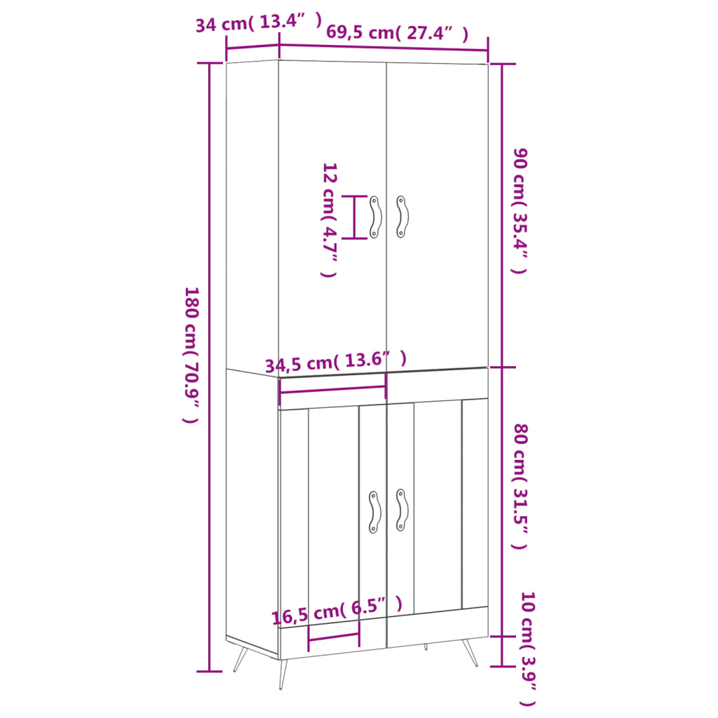 - Mere zgornje plošče: 69,5 x 34 x 90 cm (Š x G x V)