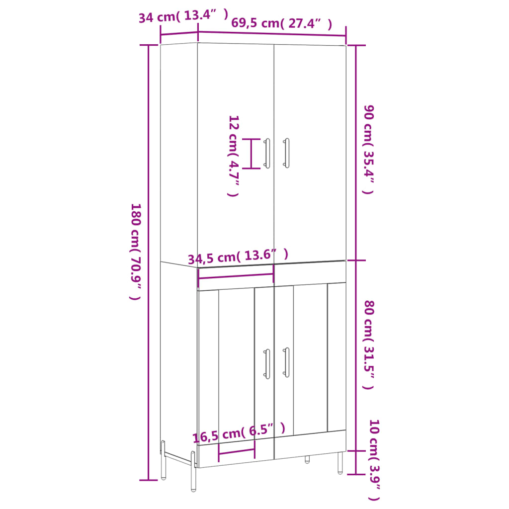 • Mere zgornje plošče: 69,5 x 34 x 90 cm (Š x G x V)