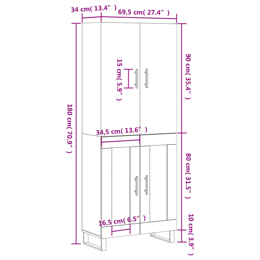 - Mere zgornje plošče: 69,5 x 34 x 90 cm (Š x G x V)