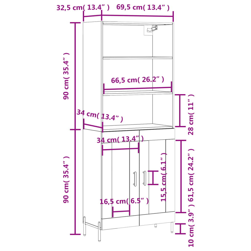 - Mere zgornje plošče: 69,5 x 32,5 x 90 cm (Š x G x V)