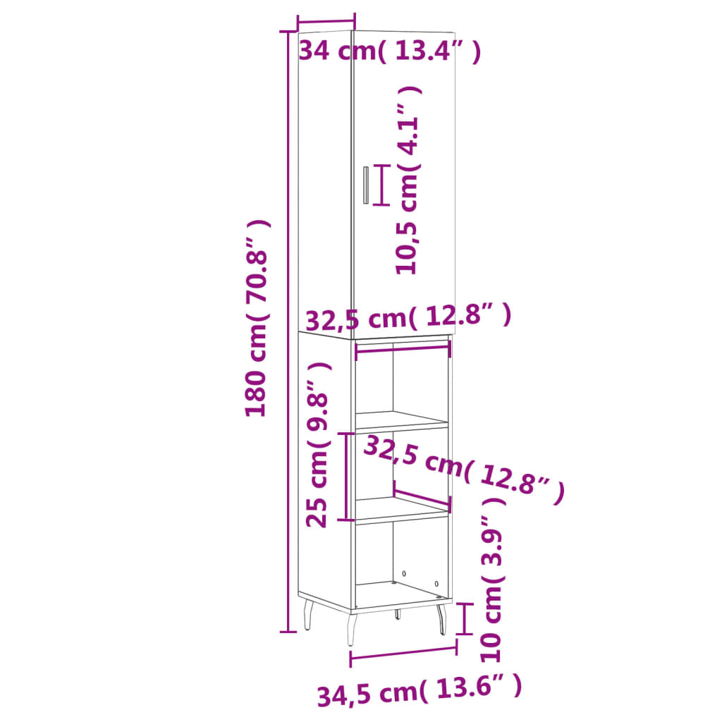 - Mere zgornje enote visoke omare: 34,5 x 34 x 90 cm (Š x G x V)