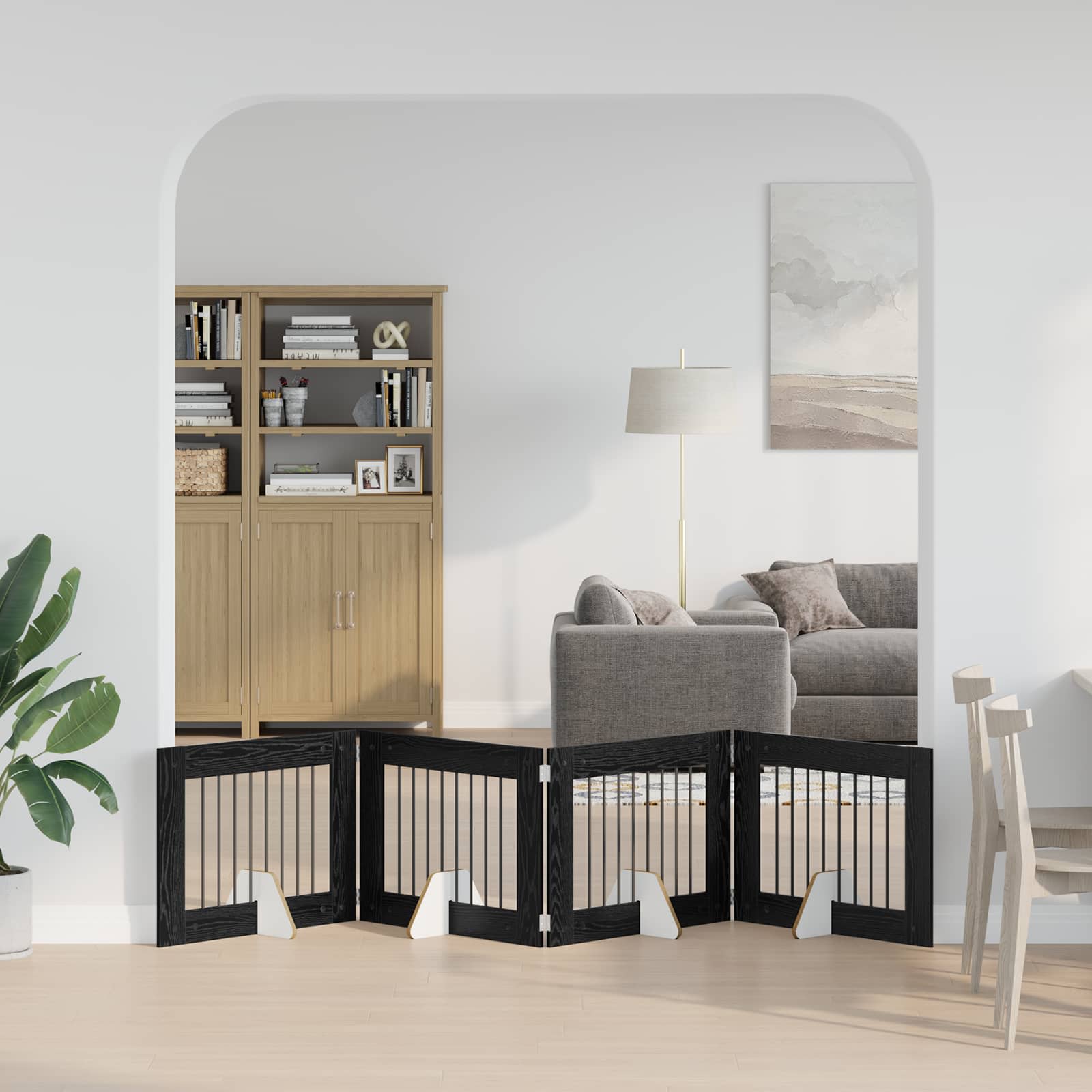 Ta kovinska pasja ograja je enostavna in moderna, odlična za upravljanje prostora ter vašim ljubljenčkom nudi varno okolje. Oblika ji omogoča, da se lepo prilega v kote ali ob steno, kar pomeni, da je vsestranska izbira za hišne ljubljenčke v urbanih okoljih. Vzdržljivo pocinkano jeklo: Ta pasja ograja je izdelana iz pocinkane jekla, ki je gladka in odporna, kar zagotavlja dolgotrajno uporabo. Izbira materialov zagotavlja, da ograja ohrani sijaj in moč, odporna je na vsakodnevno obrabo, kar daje lastnikom mir. Zložljiva zasnova: Ima zložljiv okvir za enostavno shranjevanje, ko ni v uporabi, kar je odlična izbira za tiste, ki živijo v manjših stanovanjih. Hitro ga lahko postavite ali pospravite brez težav. Pravokotna praktičnost: Njena pravokotna zasnova maksimizira prostor. Idealna je za namestitev v sobe, saj se lepo prilega ob stene ali v kote, kar jo dela funkcionalno izbiro za hišne ljubljenčke ter lastnike, ki želijo ohraniti čisto bivalno okolje. Prenosna učinkovitost: Ta pasja ograja je lahka, kar omogoča enostavno premikanje po prostoru ali prenašanje na potovanja. Varno drži vašega ljubljenčka, kamor koli greste. Enostavna montaža: Montaža ne zahteva posebnih orodij, kar pomeni, da jo lahko hitro sestavita dve osebi. Enostavno prilagajanje prostora potrebam vašega hišnega ljubljenčka je hitro in učinkovito.