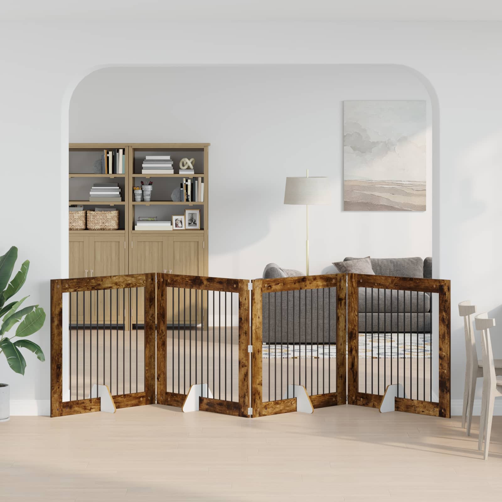 Ta kovinska pasja ograja je enostavna in moderna, odlična za upravljanje prostora ter vašim ljubljenčkom nudi varno okolje. Oblika ji omogoča, da se lepo prilega v kote ali ob steno, kar pomeni, da je vsestranska izbira za hišne ljubljenčke v urbanih okoljih. Vzdržljivo pocinkano jeklo: Ta pasja ograja je izdelana iz pocinkane jekla, ki je gladka in odporna, kar zagotavlja dolgotrajno uporabo. Izbira materialov zagotavlja, da ograja ohrani sijaj in moč, odporna je na vsakodnevno obrabo, kar daje lastnikom mir. Zložljiva zasnova: Ima zložljiv okvir za enostavno shranjevanje, ko ni v uporabi, kar je odlična izbira za tiste, ki živijo v manjših stanovanjih. Hitro ga lahko postavite ali pospravite brez težav. Pravokotna praktičnost: Njena pravokotna zasnova maksimizira prostor. Idealna je za namestitev v sobe, saj se lepo prilega ob stene ali v kote, kar jo dela funkcionalno izbiro za hišne ljubljenčke ter lastnike, ki želijo ohraniti čisto bivalno okolje. Prenosna učinkovitost: Ta pasja ograja je lahka, kar omogoča enostavno premikanje po prostoru ali prenašanje na potovanja. Varno drži vašega ljubljenčka, kamor koli greste. Enostavna montaža: Montaža ne zahteva posebnih orodij, kar pomeni, da jo lahko hitro sestavita dve osebi. Enostavno prilagajanje prostora potrebam vašega hišnega ljubljenčka je hitro in učinkovito.