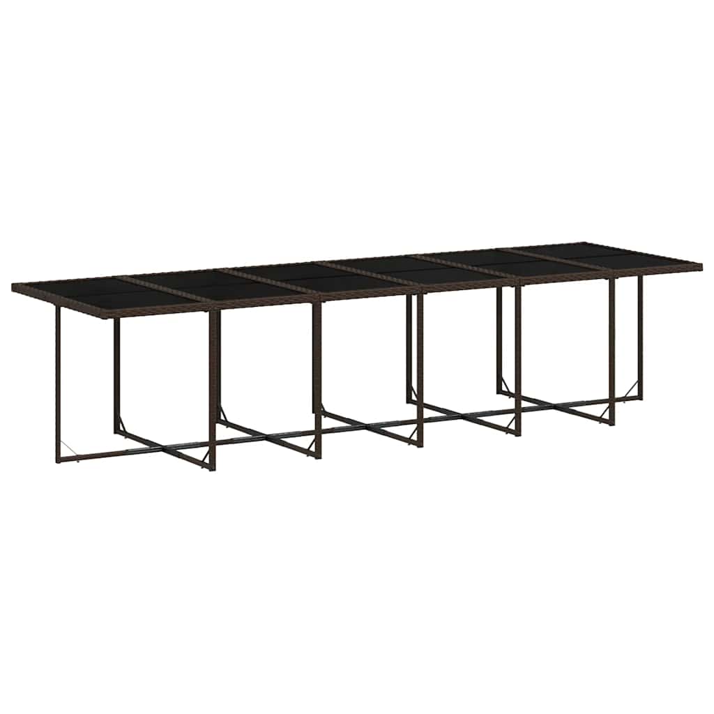 Ta vrtna jedilna garnitura je odlična izbira za večerjo na prostem ali za sprostitev na vrtu, dvorišču ali terasi. Vzdržljiv material: PE ratan, znan tudi kot poli ratan, je močan sintetični material, ki zahteva malo vzdrževanja in je videti kot naravni ratan. Je lahek, enostaven za čiščenje in se zaradi svoje vzdržljivosti in odpornosti na vremenske vplive pogosto uporablja za zunanje pohištvo.Kompaktno shranjevanje: Te stole je mogoče zložiti, zato jih je enostavno shraniti pod mizo. Ko so zloženi, se lepo prilegajo pod mizo in tvorijo prostorsko varčno kocko.Udobno sedenje: To zunanje pohištvo z debelo oblazinjenimi blazinami zagotavlja udobno sedenje.Prevleko je mogoče odstraniti in oprati: Te sedežne blazine imajo odstranljive prevleke za lažje pranje in vzdrževanje. Prevleke za blazine za stole imajo na zadnji strani zavihek za enostavno pritrditev na stole.Steklena mizna plošča: Površina vrtne mize je izdelana iz močnega in trpežnega kaljenega stekla, kar omogoča enostavno čiščenje z vlažno krpo in vašemu zunanjemu prostoru doda pridih elegance. Dobro je vedeti:Če želite, da vaše zunanje pohištvo ostane lepo, vam priporočamo, da ga zaščitite z vodoodporno prevleko. Največ 110 kg na sedež.