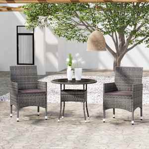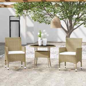 Uživajte v prijetnem obroku ali popoldanskem čaju s to vrtno jedilno garnituro! Elegantno zasnovana garnitura bo ključna točka vašega vrta in terase! Zunanja jedilna garnitura ima prašno premazan jeklen okvir, ki je oblečen v poli ratan. Mizna plošča je izdelana iz kaljenega stekla, zaradi česar je enostavna za čiščenje. Debelo podložene blazine zagotavljajo izjemno udobje med sedenjem. Opomba: Da bi podaljšali življenjsko dobo vašega zunanjega pohištva, vam priporočamo, da ga zaščitite z vodoodporno prevleko.