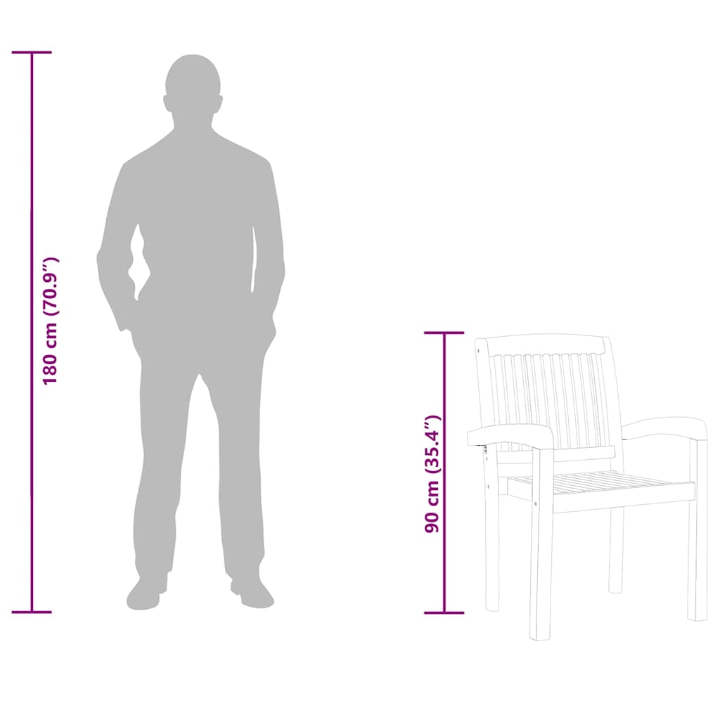 S to jedilno garnituro lahko svoji jedilnici, vrtu ali terasi dodate pridih rustikalnega šarma! Trdna tikovina: Trdna tikovina je čudovit naravni material. Je sušena na zraku, sušena v peči in nato fino brušena za pridobivanje gladkega videza. Tikovina je znana po svoji izjemni moči in vremenski odpornosti.Trden okvir: Leseni okvirji zagotavljajo trdnost in stabilnost, zaradi česar je ta jedilna garnitura odlična izbira, če želite kupiti dolgotrajen kos vrtnega pohištva.Stoli, ki jih je mogoče zložiti enega na drugega: Jedilne stole je mogoče zložiti enega na drugega, da prihranite prostor za shranjevanje, ko niso v uporabi. Opomba:Da bi podaljšali življenjsko dobo vašega zunanjega pohištva, vam priporočamo, da ga zaščitite z vodoodporno prevleko.
