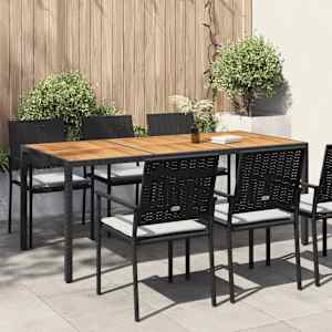 Ta vrtna miza iz poli ratana združuje stil in funkcionalnost, zato bo zagotovo glavna točka vašega vrta, dvorišča ali katerega koli drugega dnevnega prostora. Zunanja miza ima prašno premazan jeklen okvir, ki je oblečen v poli ratan, zato je močna in stabilna. Njena površina je izdelana iz trdnega akacijevega lesa, trdega lesa z gostimi vzorci. Ta čudovito oblikovana miza za teraso je stabilna, trpežna in privlačna. Izjemna ročna izdelava in čudoviti vzorci lesa zagotavljajo, da je vsak kos malo drugačen od ostalih. Opomba: Da bi podaljšali življenjsko dobo vašega zunanjega pohištva, vam priporočamo, da ga zaščitite z vodoodporno prevleko.