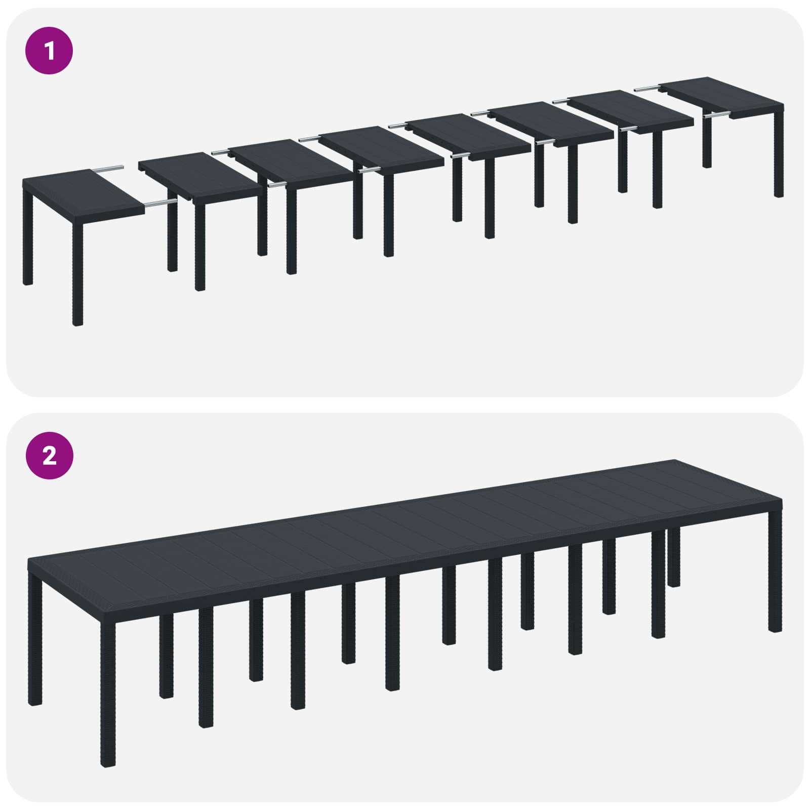 Ta moderna vrtna miza doda malo elegance vsakemu zunanjemu prostoru in je odlična za srečanja. Njena enostavna, a moderna zasnova se super prilega vrtom, terasam in zunanjim prostorom, ponuja pa trikratno – stil, funkcionalnost in udobje. Njena pravokotna oblika zagotavlja dovolj prostora, kar jo dela idealno za večje zabave ali družinske obroke na prostem. Robustna izdelava zagotavlja dolgotrajno uporabo. Možno jekleno ogrodje: Trdno jekleno ogrodje nudi podporo mizi in je odporno na vreme. Konstrukcija preprečuje zibanje in zagotavlja stabilnost, tudi na neravnih površinah. Ohranila bo svojo obliko in funkcionalnost, ne glede na to, kako pogosto jo uporabljate. Površina poli ratana: Poli ratan, odporen na vreme, daje mizi tako lepotico kot funkcionalnost. Spominja na naravni ratan in doda elegance in topline zunanjim prostorom. Enostavno jo je očistiti, kar olajša uživanje v vašem prostoru. Optimizirane mize noge: Stolpne noge mize ponujajo močno podporo in stabilnost, kar je ključno za robustno pohištvo. Njihov črn videz dopolnjuje sodoben stil te mize, kar ji omogoča, da se brez težav zlije z različnimi zunanjimi dekoracijami. Funkcionalna pravokotna oblika: Ta miza je odlična za veliko število gosta, saj ponuja dovolj prostora. Njena pravokotna oblika omogoča, da se okoli nje sedi več ljudi, hkrati pa omogoča prostor za hrano in različne dejavnosti. Ta zasnova povečuje prilagodljivost in uporabnost mize. Praktični nasveti za vzdrževanje: Hitro pokrijte mizo, ko je ne potrebujete, da jo zaščitite pred udarci. Tako boste podaljšali njeno življenjsko dobo in ohranili njen izgled.