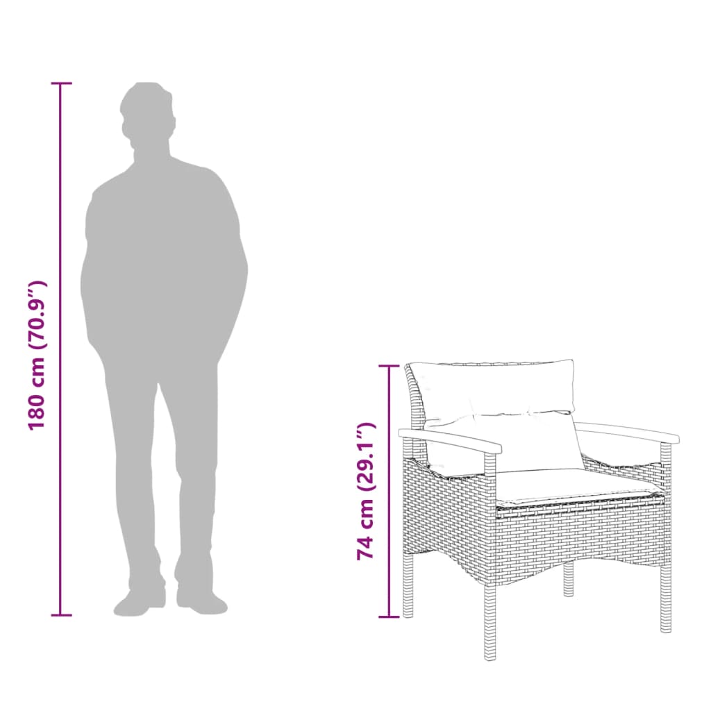 Ta vrtna sedežna garnitura je popoln dodatek za vaše dvorišče, teraso ali verando, saj zagotavlja udoben in vabljiv prostor za klepet z družino in prijatelji ali preprosto za sprostitev in uživanje na prostem. Vzdržljiv material: PE ratan, znan tudi kot poli ratan, je močan sintetični material, ki zahteva malo vzdrževanja in je videti kot naravni ratan. Je lahek, enostaven za čiščenje in se zaradi svoje vzdržljivosti in odpornosti na vremenske vplive pogosto uporablja za zunanje pohištvo. Stabilna mizna plošča, ki je enostavna za čiščenje: Ta vrtna miza ima ploščo iz akacijevega lesa, ki je čvrsta, vzdržljiva in jo je enostavno čistiti z vlažno krpo. Udobno sedenje: To zunanje pohištvo z debelo oblazinjenimi blazinami zagotavlja udobno sedenje. Prevleko je mogoče odstraniti in oprati: Te sedežne blazine imajo odstranljive prevleke za lažje pranje in vzdrževanje.Robusten in stabilen okvir: Prašno barvan jekleni okvir zagotavlja, da je vrtno pohištvo močno in stabilno za vsakodnevno uporabo na prostem. Dobro je vedeti:Če želite, da vaše zunanje pohištvo ostane lepo, vam priporočamo, da ga zaščitite z vodoodporno prevleko. Največ 110 kg na sedež. Zavedajte se nevarnosti odprtega ognja in drugih virov močne vročine v bližini izdelka.