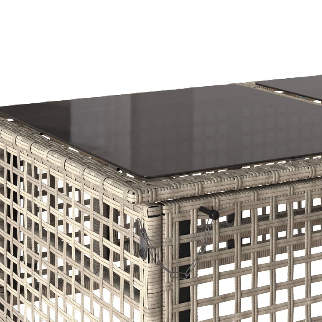 Ta vrtna sedežna garnitura je popoln dodatek za vaše dvorišče, teraso ali verando, saj zagotavlja udoben in vabljiv prostor za klepet z družino in prijatelji ali preprosto za sprostitev in uživanje na prostem. Vzdržljiv material: PE ratan, znan tudi kot poli ratan, je močan sintetični material, ki zahteva malo vzdrževanja in je videti kot naravni ratan. Je lahek, enostaven za čiščenje in se zaradi svoje vzdržljivosti in odpornosti na vremenske vplive pogosto uporablja za zunanje pohištvo.Nastavljiva mizna plošča: Z dvigom mizne plošče lahko mizo povišate, s čimer se zunanja klubska mizica spremeni v jedilno mizo. Popolna je za sprejemanje gostov ali uživanje v obrokih na prostem.Udobno sedenje: Zunanje pohištvo z debelo oblazinjenimi blazinami zagotavlja udobno sedenje.Prevleko je mogoče odstraniti in oprati: Te sedežne blazine imajo odstranljive prevleke za lažje pranje in vzdrževanje.Steklena mizna plošča: Površina zunanje mize je izdelana iz močnega in trpežnega kaljenega stekla, kar omogoča enostavno čiščenje z vlažno krpo in vašemu zunanjemu prostoru doda pridih elegance. Dobro je vedeti:Če želite, da vaše zunanje pohištvo ostane lepo, vam priporočamo, da ga zaščitite z vodoodporno prevleko.