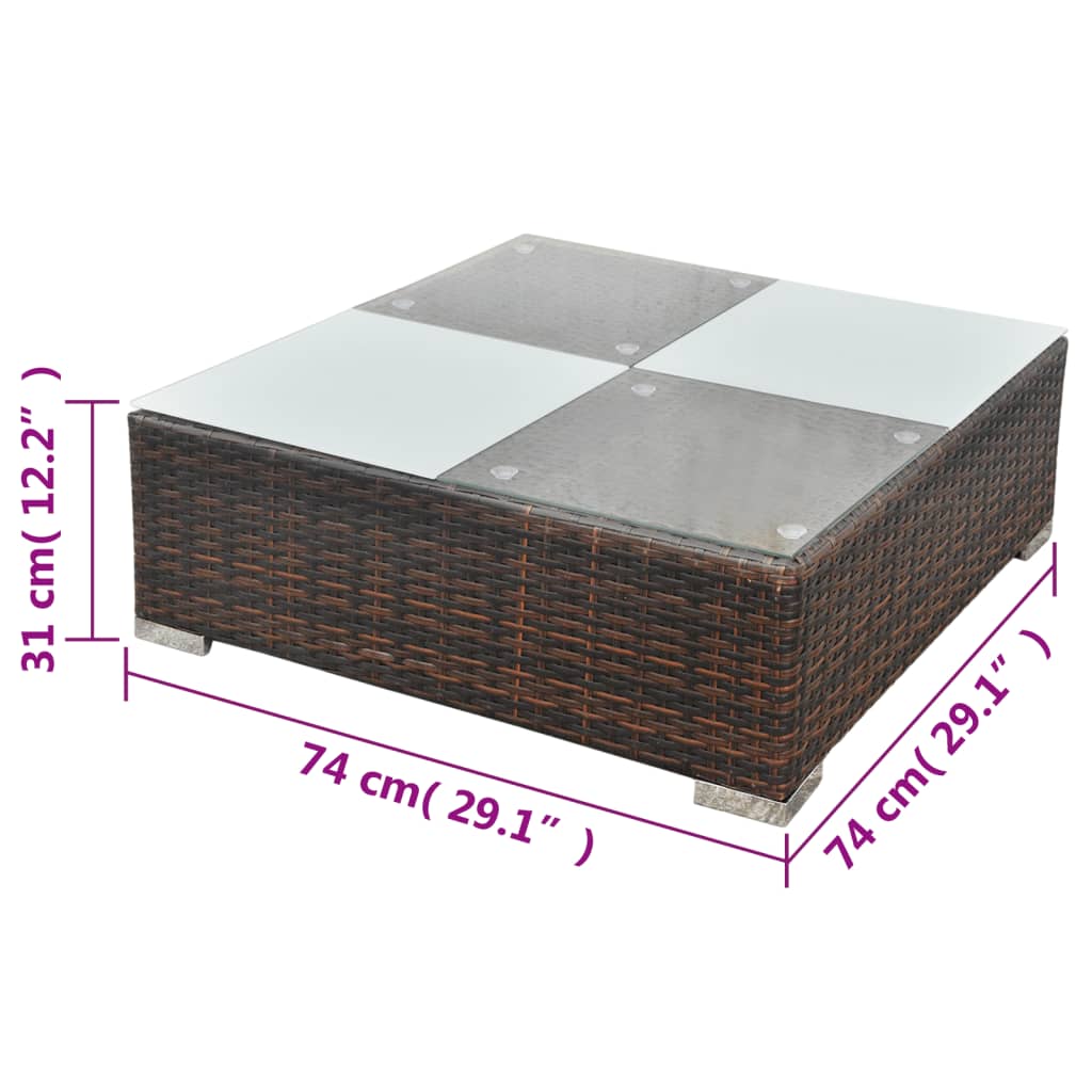 Ta sedežna garnitura iz ratana predstavlja kombinacijo stila in funkcionalnosti, zato bo prava zvezda vašega vrta. Celoten komplet pohištva je ustvarjen za celoletno uporabo na prostem. Zahvaljujoč na vodo in vremenske vplive odpornemu PE ratanu je ta sedežna garnitura trpežna, enostavna za čiščenje in primerna za vsakodnevno uporabo. Sedežna garnitura ima močan jeklen okvir s prašnim premazom. Je tudi lahka in modularna, zato je popolnoma fleksibilna in preprosta za prenašanje, podala pa se bo k vsaki postavitvi. Debele, snemljive blazine za sedeže so izjemno udobne. Paket vsebuje 2 kotna kavča, 1 sredinski kavč, 1 tabure, 1 mizico, 4 blazine za sedeže in 5 blazin za hrbet.