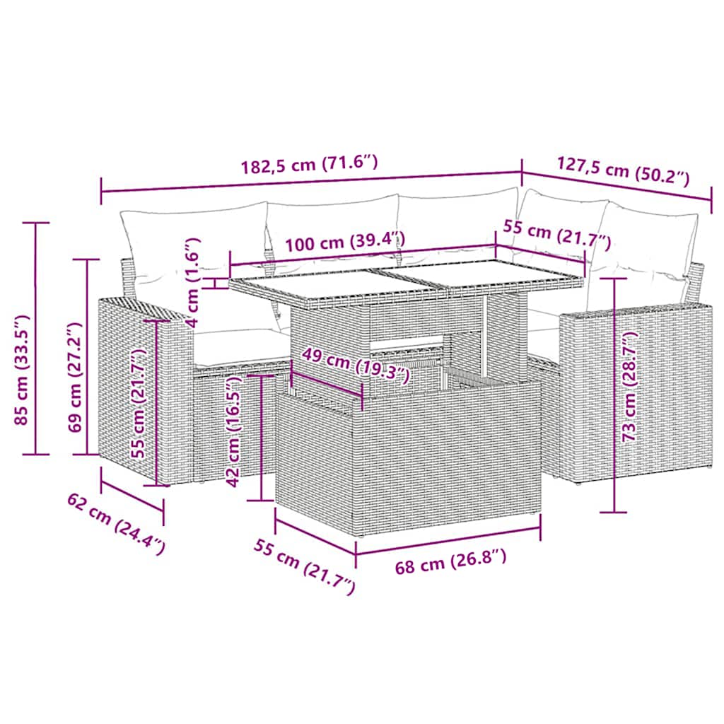 Ta vrtna sedežna garnitura je popoln dodatek za vaše dvorišče, teraso ali verando, saj zagotavlja udoben in vabljiv prostor za klepet z družino in prijatelji ali preprosto za sprostitev in uživanje na prostem.Trpežen material: PE ratan, znan tudi kot poli ratan, je močan sintetični material, ki ne potrebuje vzdrževanja in je videti kot naravni ratan. Je lahek, enostaven za čiščenje in se zaradi svoje vzdržljivosti in odpornosti na vremenske vplive pogosto uporablja za zunanje pohištvo.Funkcija shranjevanja z vodoodporno vrečo: Vsak vrtni sedež ima prostor za shranjevanje pod sedežem, skupaj z vodoodporno vrečo za shranjevanje blazin, igrač in drugih predmetov. Notranje vreče imajo zgornjo prevleko in jih je mogoče s pomočjo primenjal varno pritrditi na sedeže za dodatno varnost.Prevleko je mogoče odstraniti in oprati: Te sedežne blazine imajo odstranljive prevleke za lažje pranje in vzdrževanje.Modularna zasnova: Ta komplet zunanjega pohištva ima modularno zasnovo, zaradi česar je popolnoma prilagodljiv in enostaven za premikanje, tako da lahko zunanjo garnituro postavite kakor koli želite.Dobro je vedeti:Če želite, da vaše zunanje pohištvo ostane lepo, vam priporočamo, da ga zaščitite z vodoodporno prevleko.