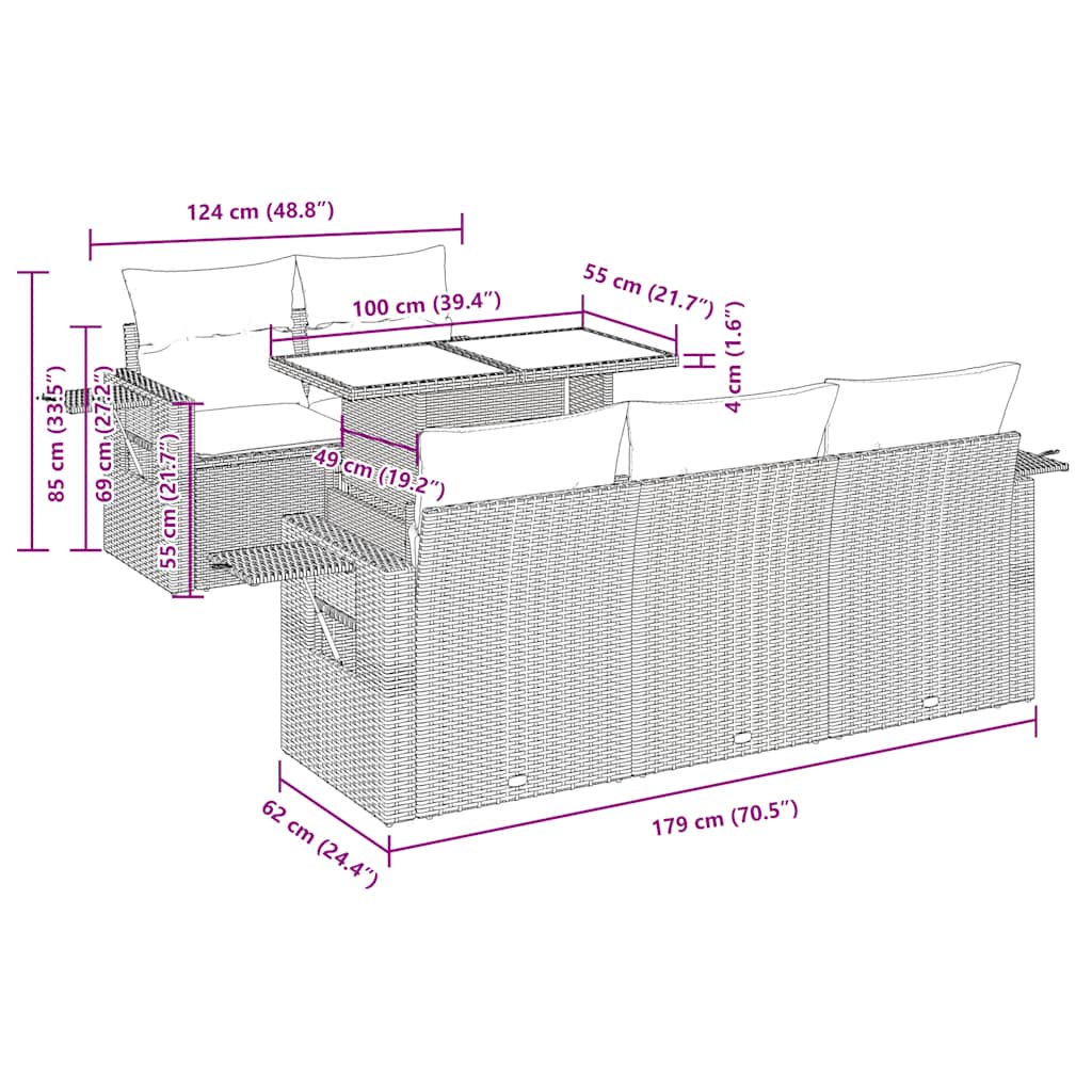 Ta vrtna sedežna garnitura je popoln dodatek za vaše dvorišče, teraso ali verando, saj zagotavlja udoben in vabljiv prostor za klepet z družino in prijatelji ali preprosto za sprostitev in uživanje na prostem.Trpežen material: PE ratan, znan tudi kot poli ratan, je močan sintetični material, ki ne potrebuje vzdrževanja in je videti kot naravni ratan. Je lahek, enostaven za čiščenje in se zaradi svoje vzdržljivosti in odpornosti na vremenske vplive pogosto uporablja za zunanje pohištvo.Funkcija shranjevanja z vodoodporno vrečo: Vsak vrtni sedež ima prostor za shranjevanje pod sedežem, skupaj z vodoodporno vrečo za shranjevanje blazin, igrač in drugih predmetov. Notranje vreče imajo zgornjo prevleko in jih je mogoče s pomočjo primenjal varno pritrditi na sedeže za dodatno varnost.Priročna stranska mizica: To zunanje pohištvo ima zložljivo stransko mizico s plinsko vzmetjo, ki zagotavlja priročen prostor za shranjevanje vaših potrebščin na dosegu roke.Prevleko je mogoče odstraniti in oprati: Te sedežne blazine imajo odstranljive prevleke za lažje pranje in vzdrževanje.Modularna zasnova: Ta komplet zunanjega pohištva ima modularno zasnovo, zaradi česar je popolnoma prilagodljiv in enostaven za premikanje, tako da lahko zunanjo garnituro postavite kakor koli želite.Dobro je vedeti:Če želite, da vaše zunanje pohištvo ostane lepo, vam priporočamo, da ga zaščitite z vodoodporno prevleko.