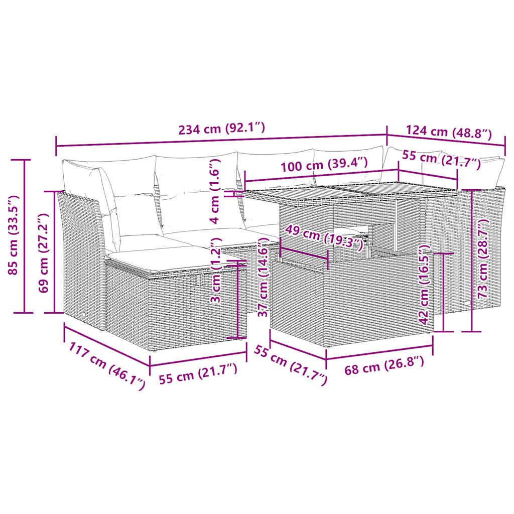 Ta vrtna sedežna garnitura je popoln dodatek za vaše dvorišče, teraso ali verando, saj zagotavlja udoben in vabljiv prostor za klepet z družino in prijatelji ali preprosto za sprostitev in uživanje na prostem.Trpežen material: PE ratan, znan tudi kot poli ratan, je močan sintetični material, ki ne potrebuje vzdrževanja in je videti kot naravni ratan. Je lahek, enostaven za čiščenje in se zaradi svoje vzdržljivosti in odpornosti na vremenske vplive pogosto uporablja za zunanje pohištvo.Funkcija shranjevanja z vodoodporno vrečo: Vsak vrtni sedež ima prostor za shranjevanje pod sedežem, skupaj z vodoodporno vrečo za shranjevanje blazin, igrač in drugih predmetov. Notranje vreče imajo zgornjo prevleko in jih je mogoče s pomočjo primenjal varno pritrditi na sedeže za dodatno varnost.Prevleko je mogoče odstraniti in oprati: Te sedežne blazine imajo odstranljive prevleke za lažje pranje in vzdrževanje.Modularna zasnova: Ta komplet zunanjega pohištva ima modularno zasnovo, zaradi česar je popolnoma prilagodljiv in enostaven za premikanje, tako da lahko zunanjo garnituro postavite kakor koli želite.Dobro je vedeti:Če želite, da vaše zunanje pohištvo ostane lepo, vam priporočamo, da ga zaščitite z vodoodporno prevleko.