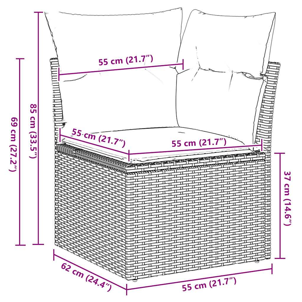 Ta vrtna sedežna garnitura je popoln dodatek za vaše dvorišče, teraso ali verando, saj zagotavlja udoben in vabljiv prostor za klepet z družino in prijatelji ali preprosto za sprostitev in uživanje na prostem.Trpežen material: PE ratan, znan tudi kot poli ratan, je močan sintetični material, ki ne potrebuje vzdrževanja in je videti kot naravni ratan. Je lahek, enostaven za čiščenje in se zaradi svoje vzdržljivosti in odpornosti na vremenske vplive pogosto uporablja za zunanje pohištvo.Funkcija shranjevanja z vodoodporno vrečo: Vsak vrtni sedež ima prostor za shranjevanje pod sedežem, skupaj z vodoodporno vrečo za shranjevanje blazin, igrač in drugih predmetov. Notranje vreče imajo zgornjo prevleko in jih je mogoče s pomočjo primenjal varno pritrditi na sedeže za dodatno varnost.Prevleko je mogoče odstraniti in oprati: Te sedežne blazine imajo odstranljive prevleke za lažje pranje in vzdrževanje.Modularna zasnova: Ta komplet zunanjega pohištva ima modularno zasnovo, zaradi česar je popolnoma prilagodljiv in enostaven za premikanje, tako da lahko zunanjo garnituro postavite kakor koli želite.Dobro je vedeti:Če želite, da vaše zunanje pohištvo ostane lepo, vam priporočamo, da ga zaščitite z vodoodporno prevleko.