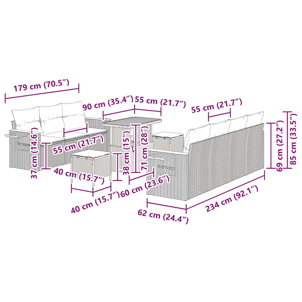 Vrtna sedežna garnitura z blazino 10 pcs Siva