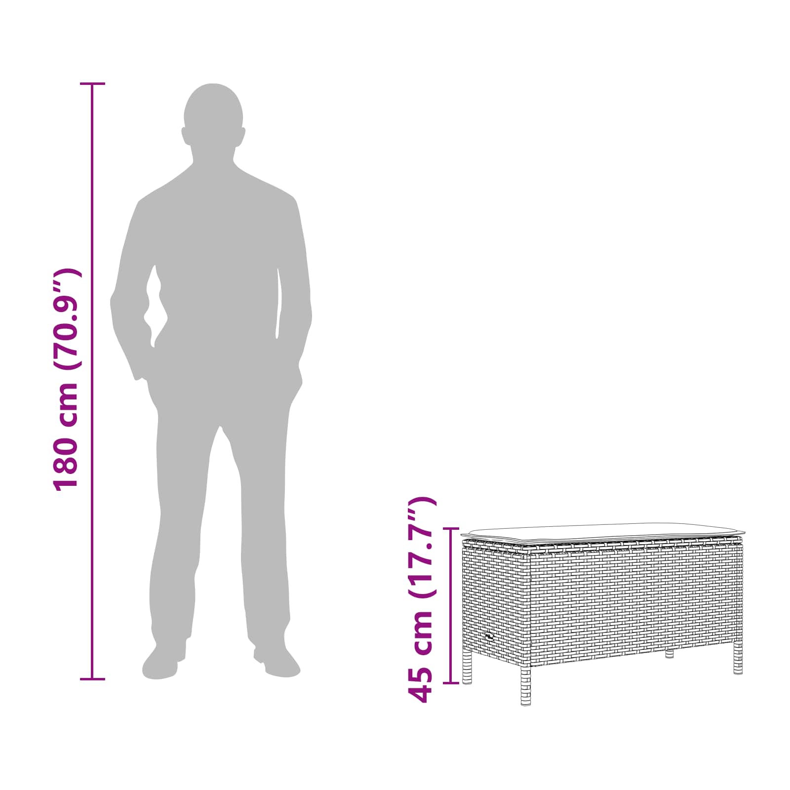 Ta moderni tabure za vrt ponuja super stil in večnamensko rešitev za udobno sedenje, bodisi zunaj bodisi znotraj. Z minimalističnim izgledom se brez težav prilagaja različnim okoljem, kar prinaša nevsiljivo eleganco v vrtove in dnevne sobe. Ne le da dopolnjuje obstoječe pohištvo, ampak je tudi privlačen kos, ki vabi k sprostitvi ob soncu. Material Poli ratan Kombinira lepoto in moč. Ta tabure je izdelan iz poli ratana. Vreme mu ne more škoditi in lepo izgleda tudi v slabih pogojih. Naravni izgled dodaja temu kosu sophistication in je odličen za vaš notranji ali zunanji prostor, zagotavlja pa tudi dolgotrajnost. Oblikovanje odstranljive blazine S priročnim zadrgo, blazina na sedežu olajša čiščenje. Pena in poliestrska vlakna v blazini zagotavljajo udobje in dolgotrajnost, pa še enostavno je prati in vzdrževati. Kvadratna konstrukcija nog Ponuja stabilno podporo. Kvadratne noge dopolnjujejo moderen stil tabureta, izdelane iz poli ratana, pa dodajajo čvrstost in sodoben pridih. Vsestranska uporaba Primeren za terase in notranje prostore, ta tabure se prilagaja različnim okoljem. Ali pa služi kot dodaten sedež v dnevni sobi, kar povečuje uporabnost in užitek. Osnovna nega Da ostane v odličnem stanju, ga zaščitite z vodoodporno prevleko, kadar ga ne uporabljate. Enostavno ga sestavite, kar zagotavljata dve osebi in izvijač, kar povečava stabilnost, medtem ko pozornost na čiščenje ohranja lep izgled.
