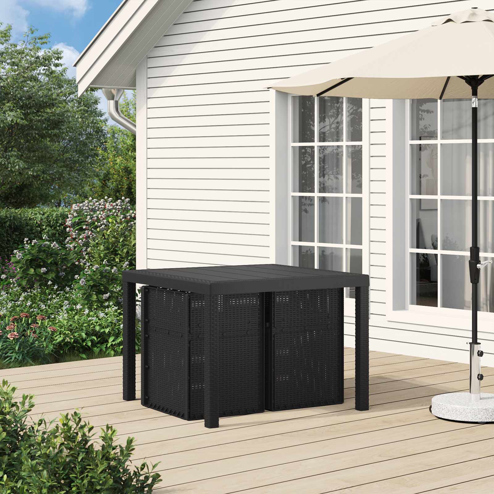 Ti zunanji jedilni stoli združujejo sodoben slog s praktičnim oblikovanjem, kar jih naredi odlične za terase, vrtove in balkone. Njihova enostavna struktura se brez težav prilagodi različnim zunanjim okoljem, ponujajo pa udobje, ki ga potrebujete za vsakodnevno uporabo. Trajni material: Narejeni so iz trpežnega materiala s trdno konstrukcijo, zato imajo ti stoli lastnosti, odporne na vreme in UV-sevanje, kar jim pomaga prenesti dolgotrajno izpostavljenost soncu, s čimer se zmanjša tveganje za bledenje ali degradacijo materiala sčasoma in ohranja čisto, dosledno podobo. Obrnjen nazaj: Funkcija obrnjenega naslonjala omogoča enostavno zlaganje naslonjala, kar omogoča, da lahko stole potisnete pod nekoliko višje mize za bolj učinkovito shranjevanje. Ta praktična zasnova podpira uporabo prihranka prostora ter pomaga ohranjati zunanje prostore urejene in organizirane, ko niso v uporabi. Vsestranska uporaba: Primerni za širok spekter zunanjih prizorov, ti jedilni stoli se brez težav prilagajajo različnim priložnostim. Idealni so za terase ali vrtove, saj zagotavljajo udobno sedalno rešitev za neformalne obroke, sproščujoče lenarjenje ali gostitev srečanj s prijatelji in družino. Enostavna sestava: Zasnovani za enostavno nastavitev, se lahko stoli sestavijo s pomočjo navodil po korakih skupaj z osnovnimi orodji. Preprost postopek zmanjšuje napor in zagotavlja gladko izkušnjo pri namestitvi brez nepotrebnih zapletov. Preprosto vzdrževanje: Rutinsko nego je enostavno opraviti z hitro obrišanjem z vlažno krpo, da površine ostanejo čiste. Za dodatno zaščito je priporočljivo uporabljati prevleko, ko niso v uporabi, kar pomaga zaščititi stole pred zunanjimi elementi, ohranja dolgo življenjsko dobo in dosledno delovanje skozi čas.