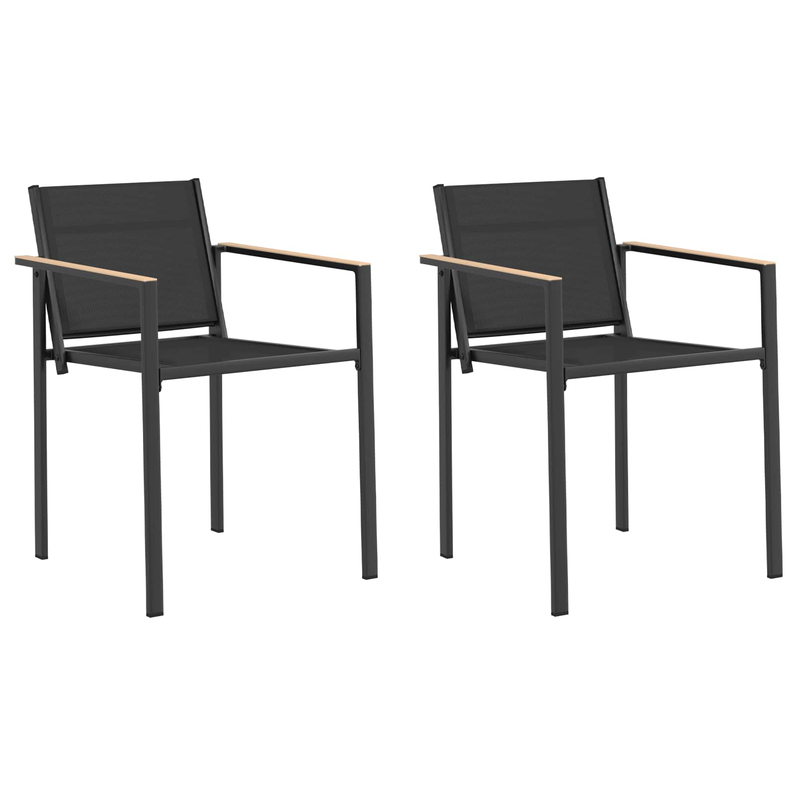 Ti moderni vrtnarski stoli nudijo šik, a funkcionalno rešitev za sedenje na prostem. Imajo minimalistični dizajn in čiste linije, kar jih dela odlične za pomladne in poletne zabave v tvojem vrtu ali patioju. Textilene tkanina: Ti stoli so narejeni iz textilene tkanine, znane po svoji vzdržljivosti in odpornosti na UV žarke. Ta robustna tkanina se obdrži kljub dolgotrajni zunanji uporabi, tako da ostanejo lepi še dolga leta. Odlično se znajdejo tudi v nepredvidljivem vremenu, ne da bi izgubili barvo ali obliko. Moderen dizajn: Vsak stol ima eleganten, raven naslon in sodoben stil, ki nudi estetsko privlačnost in podporo. Oblika je skrbno zasnovana, da se poda različnim zunanjim okoljem ter ponuja udobje in stil s svojo povsem oblikovano silhueto in praktično zasnovo. Zanesljiv okvir: Okvir je v elegantni antracitni barvi, kar čudovito kontrastira s črno textilene tkanino. Ta kombinacija prinaša eleganten občutek, idealno za modernizacijo zunanjih prostorov s pridihom luksuza in preprostosti. Praktična montaža: Zasnovani za preprosto sestavljanje, postopek montaže zahteva dve osebi in le osnovna orodja, kar omogoča hiter prehod od pakiranja do uživanja na patioju. Vremensko odporni: S svojimi lastnostmi, odporni na bledenje, ti stoli zdržijo slabe zunanje pogoje, ne da bi pri tem ogrozili stil in funkcionalnost, kar jih dela idealne za tiste, ki uživajo na prostem.