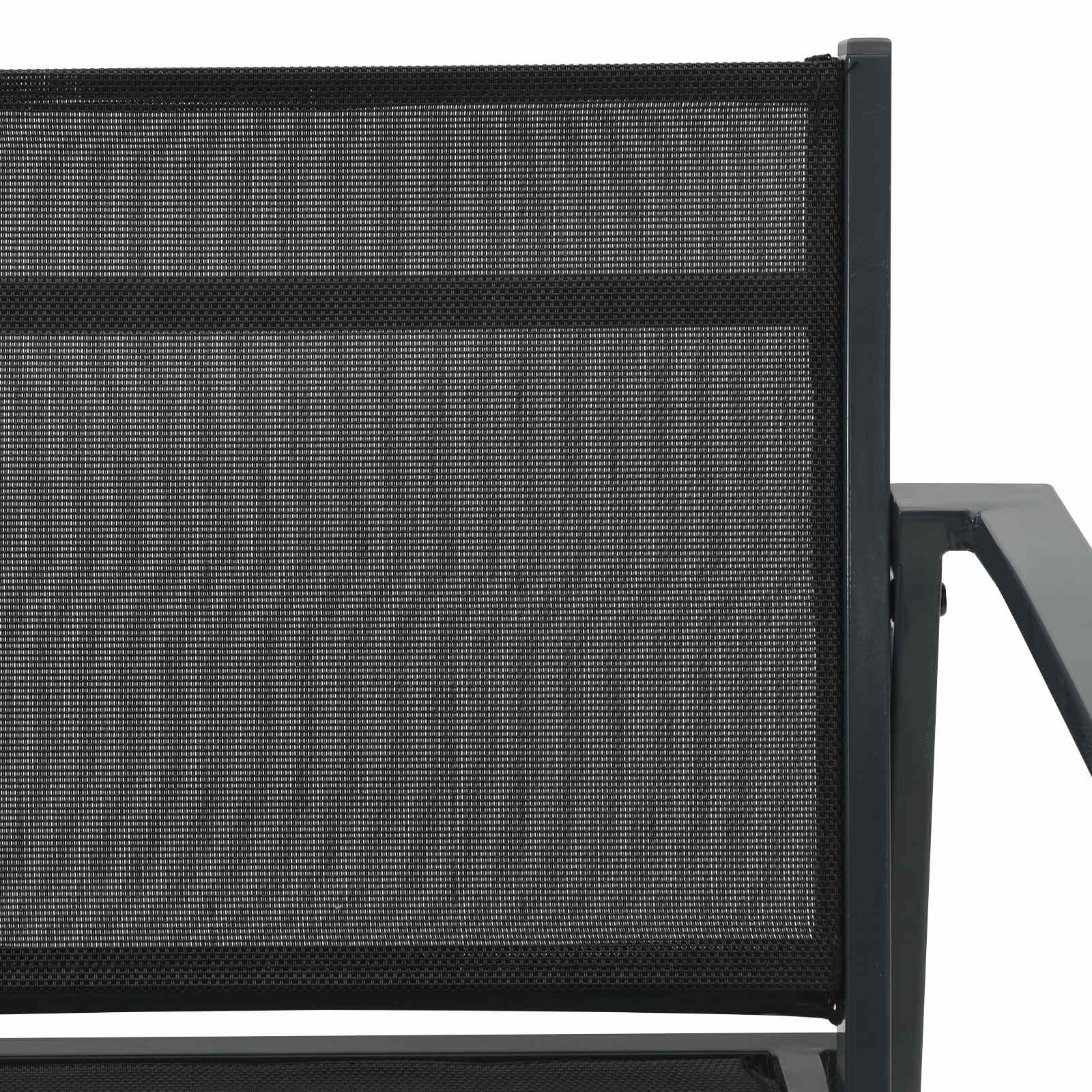 Ti moderni vrtnarski stoli nudijo šik, a funkcionalno rešitev za sedenje na prostem. Imajo minimalistični dizajn in čiste linije, kar jih dela odlične za pomladne in poletne zabave v tvojem vrtu ali patioju. Textilene tkanina: Ti stoli so narejeni iz textilene tkanine, znane po svoji vzdržljivosti in odpornosti na UV žarke. Ta robustna tkanina se obdrži kljub dolgotrajni zunanji uporabi, tako da ostanejo lepi še dolga leta. Odlično se znajdejo tudi v nepredvidljivem vremenu, ne da bi izgubili barvo ali obliko. Moderen dizajn: Vsak stol ima eleganten, raven naslon in sodoben stil, ki nudi estetsko privlačnost in podporo. Oblika je skrbno zasnovana, da se poda različnim zunanjim okoljem ter ponuja udobje in stil s svojo povsem oblikovano silhueto in praktično zasnovo. Zanesljiv okvir: Okvir je v elegantni antracitni barvi, kar čudovito kontrastira s črno textilene tkanino. Ta kombinacija prinaša eleganten občutek, idealno za modernizacijo zunanjih prostorov s pridihom luksuza in preprostosti. Praktična montaža: Zasnovani za preprosto sestavljanje, postopek montaže zahteva dve osebi in le osnovna orodja, kar omogoča hiter prehod od pakiranja do uživanja na patioju. Vremensko odporni: S svojimi lastnostmi, odporni na bledenje, ti stoli zdržijo slabe zunanje pogoje, ne da bi pri tem ogrozili stil in funkcionalnost, kar jih dela idealne za tiste, ki uživajo na prostem.