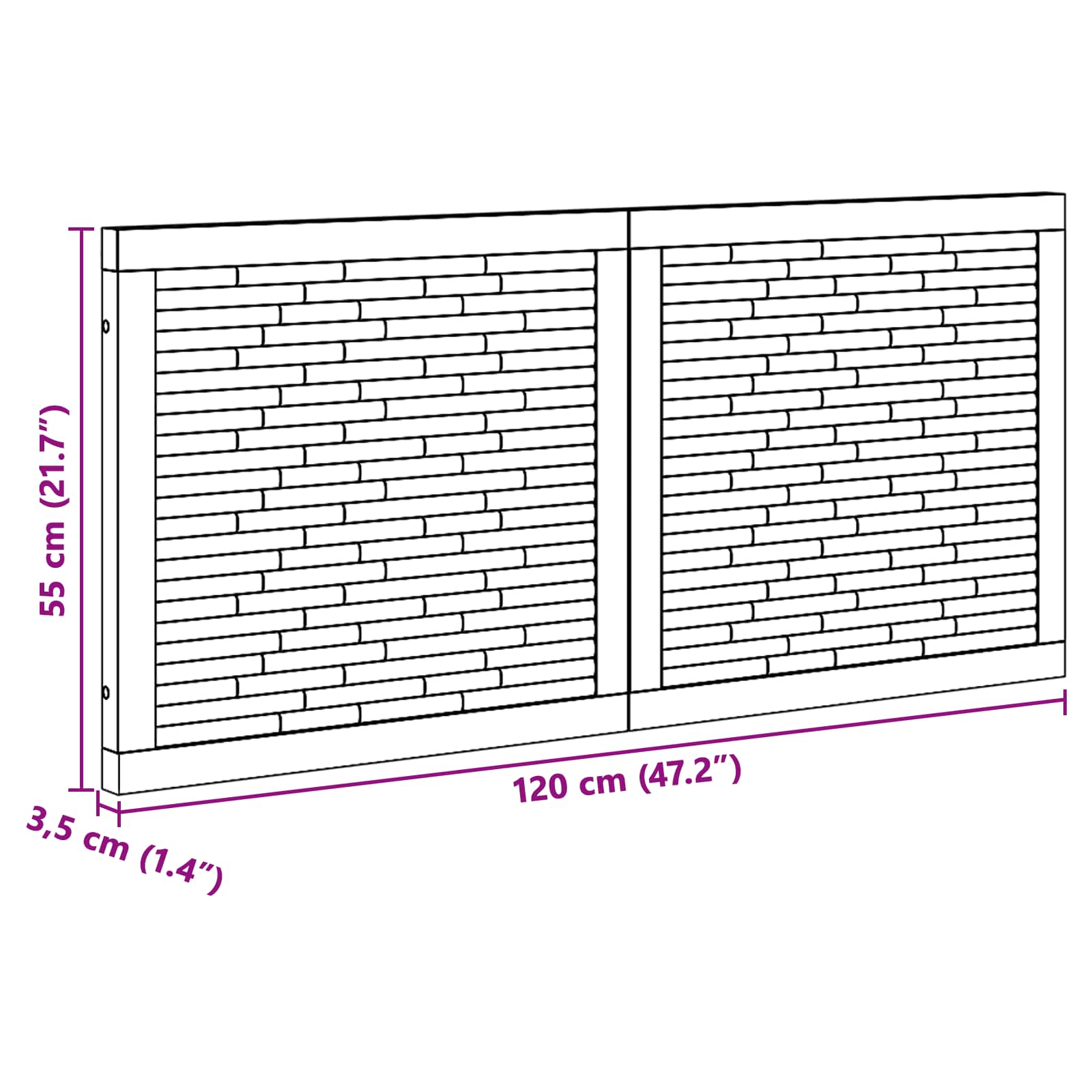 - Splošne dimenzije: 120 x 3,5 x 55 cm (D x Š x V)