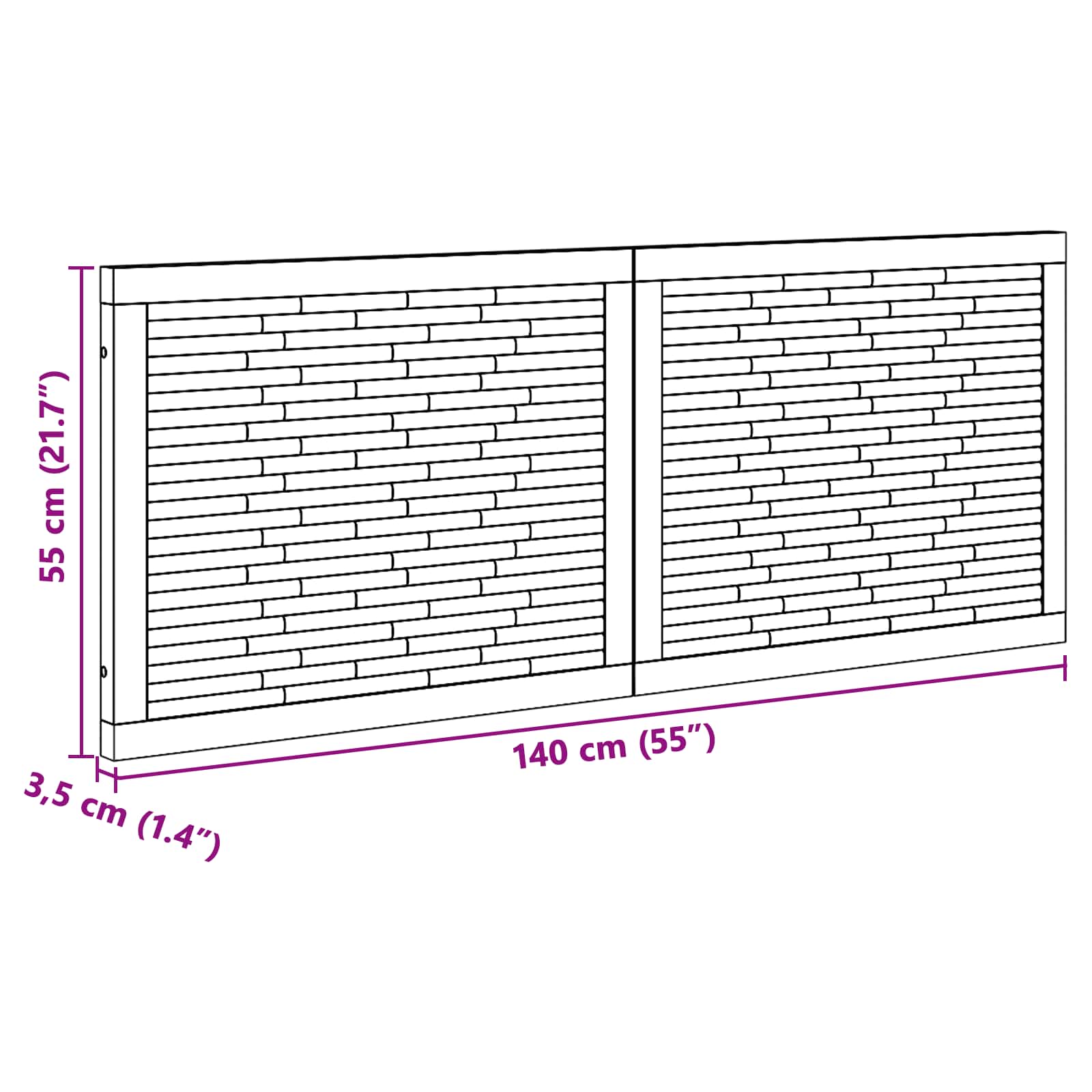 - Splošne dimenzije: 140 x 3,5 x 55 cm (D x Š x V)