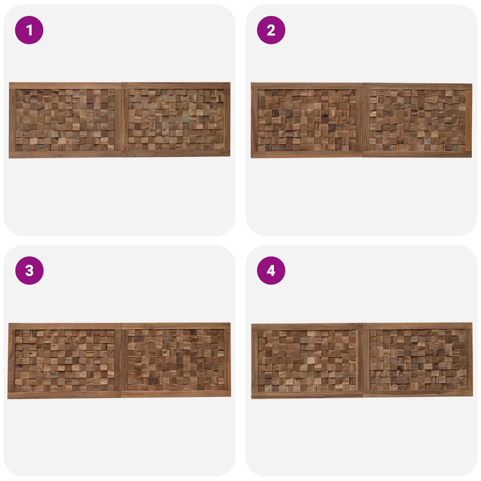 Vzglavje se odlikuje z edinstveno zasnovo, ki združuje rustikalni šarm in sodoben slog, kar je odlično za preoblikovanje vsake spalnice v prijetno zatočišče. Inovativni 3D učinek dodaja vizualno dimenzijo, zaradi česar je prava zvezda v prostoru. Njegova rustikalna obdelava prinaša toploto in udobje ter se lepo ujema z različnimi dekorativnimi temami, od podeželskega šika do modernih stilov. Premium material: Izdelano iz trdega tikovega lesa, to vzglavje je extra trpežno in odporno na vlago, zato bo dolgotrajno zadržalo svoj sijaj. Ta naravni material doda rustikalni in sofisticirani občutek ter ustvari prijeten ambijent v tvoji spalnici. Sistem za montažo na steno: Zasnovano je tako, da ponuja udobje in stabilnost, opremljeno z nosilci in vijaki za hitro namestitev. Ta sistem trdno drži vzglavje na mestu ter optimizira prostor v tvoji spalnici. 3D vizualna plastenje: Ta vzglavje vsebuje inovativno 3D zasnovo, ki dodaja globino ob steni ter ustvari atraktivno središče, ki pritegne pogled. Idealno za tiste, ki želijo dodati umetniški pridih svoji spalnici. Odporna konstrukcija: Zasnovano za vsakodnevno uporabo, to vzglavje je trpežno in odporno na obrabo, kar zagotavlja dolgotrajno zadovoljstvo brez žrtvovanja elegance. Osnovna nega: Da ohraniš njegovo čudovito površino, ga enostavno obriši s suho krpo, da odstraniš prah. Ta preprosta rutina vzdrževanja zagotavlja, da vzglavje ostane elegantno skozi čas.