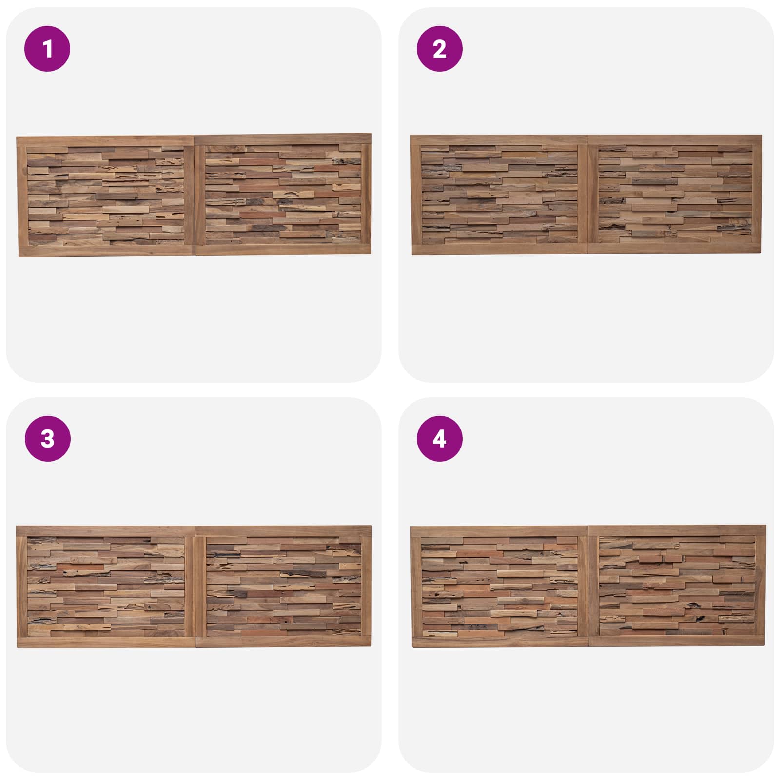 To moderno vzglavje prinaša super kombinacijo rustikalnega in podeželskega stila, kar doda prijetno vzdušje vaši spalnici. Izdelano iz trdega tikovega lesa, ne samo da izboljša izgled vaše postelje, temveč vnese naravno lepoto, ki jo cenijo vsi, ki obožujejo kanček rustikalnega šarma. Super je za tiste, ki si želijo vintage sloga, saj brez napora postane osrednja točka in doda eleganco ter sproščeno vzdušje v svoji spalnici. Premišljeni materiali: To vzglavje iz trdega tikovega lesa ponuja čudovit naravni videz in trajnost. Njegova odpornost na vlago ga dela super izbiro, da spalnico ohrani v brezhibnem stanju dalj časa. Vključeni montažni elementi: Dobavljeno s kompletnimi nosilci in vijaki, to vzglavje je hitro in enostavno za namestitev in nudi trden pritrditev na steno, kar prihrani prostor in nudi poenostavljen izgled. Lastnosti 3D učinka: 3D dizajn dodaja plasti in globino videzu vzglavja, tako da izboljša celoten izgled prostora. Ta učinek igra z svetlobo in senco ter ponuja dinamično privlačnost, ki pritegne oko. Hitro postopno nameščanje: Enostavno nastavljivo, to vzglavje lahko hitro namestite z minimalnim trudom. Uživajte v stilu in praktičnosti brez zapletov. Navodila za nego: Enostavno jo je vzdrževati, redno brisanje z suho krpo ohranja njen naravni sijaj. Izogibajte se ostrim kemikalijam, da ohranite površino v dobrem stanju.