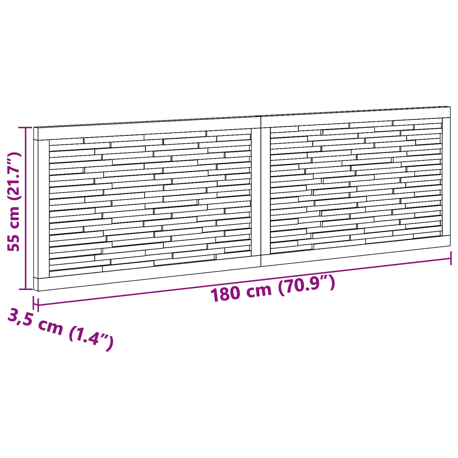 - Splošne dimenzije: 180 x 3,5 x 55 cm (D x Š x V)