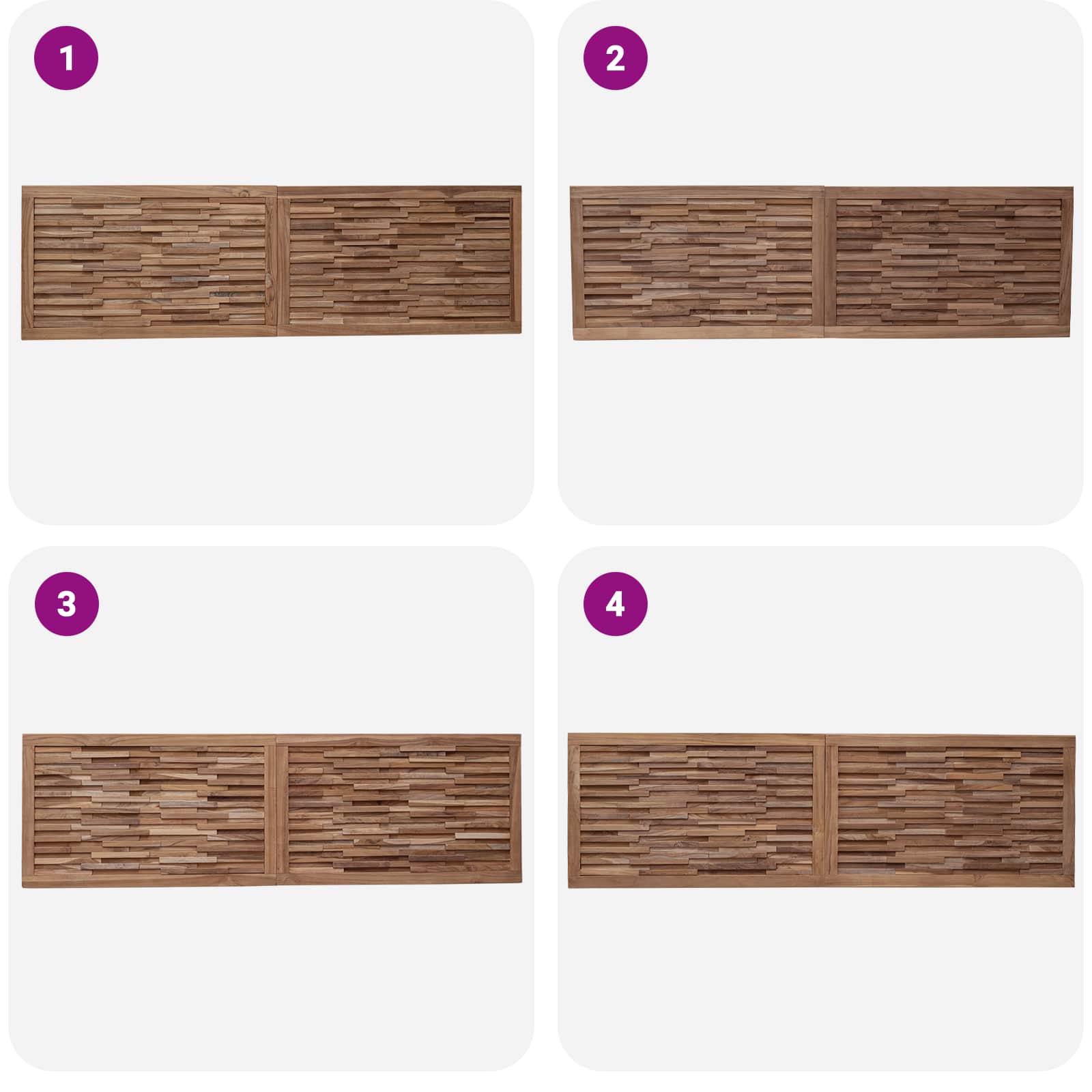 Ta moderni vzglavnik je vsestranski kos, ki izboljša vsako spalnico. Narejen je iz trdega tikovega lesa, naravni rjav odtenek pa doda toplino tvojemu prostoru za spanje. Njegov dizajn se preprosto povezuje z različnimi temami in ponuja odlično kombinacijo funkcionalnosti in estetike. Materiali: Zgrajen iz trdega tikovega lesa, ki je odporen in trpežen. Naravni vzorci in bogate barve povečujejo estetsko privlačnost in dolgotrajno uporabo. Vključene komponente: Vse potrebne konzole in vijake, da je namestitev enostavna in prihrani prostor, kar izboljšuje minimalističen videz tvoje spalnice. Lastnosti / Funkcija / Oblika: Vsak vzglavnik ima 3D dizajn, ki doda globino tvoji steni za spanje. Hitro in enostavno se montira, kar je prava izbira za vsak spalni prostor. Priporočena raba: Odličen za osrednjo točko v glavnih ali gostinskih sobah, ponuja vsestranskost za različne vrste postelj. Njegov rustikalen stil ustvari udobno in toplo vzdušje. Vzdrževanje: Preprosto obriši z suho krpo, da ohraniš vzglavnik v dobrem stanju. Izogibaj se abrazivnim sredstvom, da ne poškoduješ naravnega videza.