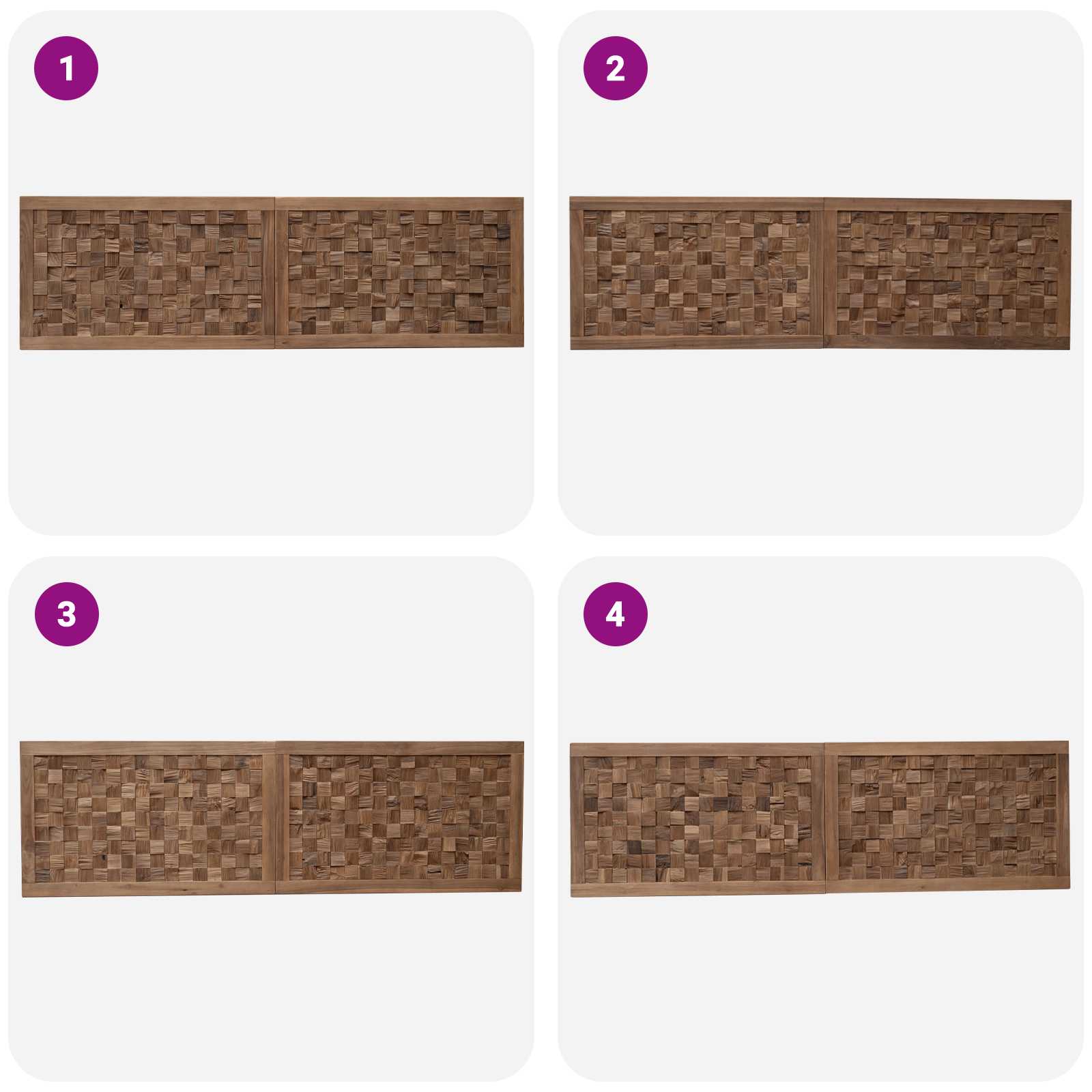 Vzglavje se odlikuje z edinstveno zasnovo, ki združuje rustikalni šarm in sodoben slog, kar je odlično za preoblikovanje vsake spalnice v prijetno zatočišče. Inovativni 3D učinek dodaja vizualno dimenzijo, zaradi česar je prava zvezda v prostoru. Njegova rustikalna obdelava prinaša toploto in udobje ter se lepo ujema z različnimi dekorativnimi temami, od podeželskega šika do modernih stilov. Premium material: Izdelano iz trdega tikovega lesa, to vzglavje je extra trpežno in odporno na vlago, zato bo dolgotrajno zadržalo svoj sijaj. Ta naravni material doda rustikalni in sofisticirani občutek ter ustvari prijeten ambijent v tvoji spalnici. Sistem za montažo na steno: Zasnovano je tako, da ponuja udobje in stabilnost, opremljeno z nosilci in vijaki za hitro namestitev. Ta sistem trdno drži vzglavje na mestu ter optimizira prostor v tvoji spalnici. 3D vizualna plastenje: Ta vzglavje vsebuje inovativno 3D zasnovo, ki dodaja globino ob steni ter ustvari atraktivno središče, ki pritegne pogled. Idealno za tiste, ki želijo dodati umetniški pridih svoji spalnici. Odporna konstrukcija: Zasnovano za vsakodnevno uporabo, to vzglavje je trpežno in odporno na obrabo, kar zagotavlja dolgotrajno zadovoljstvo brez žrtvovanja elegance. Osnovna nega: Da ohraniš njegovo čudovito površino, ga enostavno obriši s suho krpo, da odstraniš prah. Ta preprosta rutina vzdrževanja zagotavlja, da vzglavje ostane elegantno skozi čas.