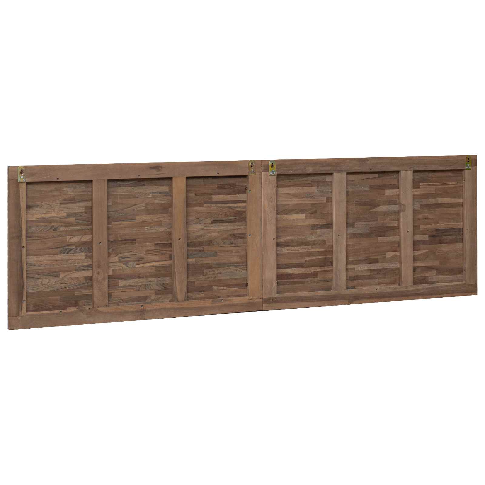 To moderno vzglavje brez napora preobrazi vsak spalni prostor s svojim elegantnim stilom in rustikalnim šarmom. Njegova pravokotna oblika in naravna tikova površina ustvarjata prijetno vzdušje, idealno za tiste, ki cenijo robustno, a elegantno oblikovanje. Povezuje klasične elemente, ki se dobro ujemajo z rustikalno in kmečko notranjostjo. Ta izstopajoč kos brez težav dopolni različne prostore s svojo privlačno estetiko. Trden tikov les: Narejeno iz tikovega lesa, ki je lepo obdelano in povečuje rustikalni šarm ter trajnost. Znano je po svoji odpornosti na vlago, kar mu zagotavlja dolgo življenjsko dobo in ga dela dragocen dodatek za spalnice. Montažni dodatki vključeni: Enostavna namestitev s priloženimi konzolami in vijaki, kar omogoča hitro izboljšanje estetike spalnice brez težav. 3D vizualni učinek: Poseben 3D učinek doda prostor globino in plasti, kar ustvarja privlačno osrednjo točko, ki pritegne pozornost in izboljšuje splošni videz. Hitro in enostavno nameščanje: Zasnova z mislijo na uporabnika omogoča hitro pritrditev, tudi za tiste, ki niso vešči v DIY, s preprostimi koraki za varno montažo. Trajna odpornost proti obrabi: Robustna konstrukcija in kvalitetni materiali zagotavljajo odpornost na obrabo, kar ohranja lepoto tudi ob pogosti uporabi, kar doda vrednost vašemu pohištvu.