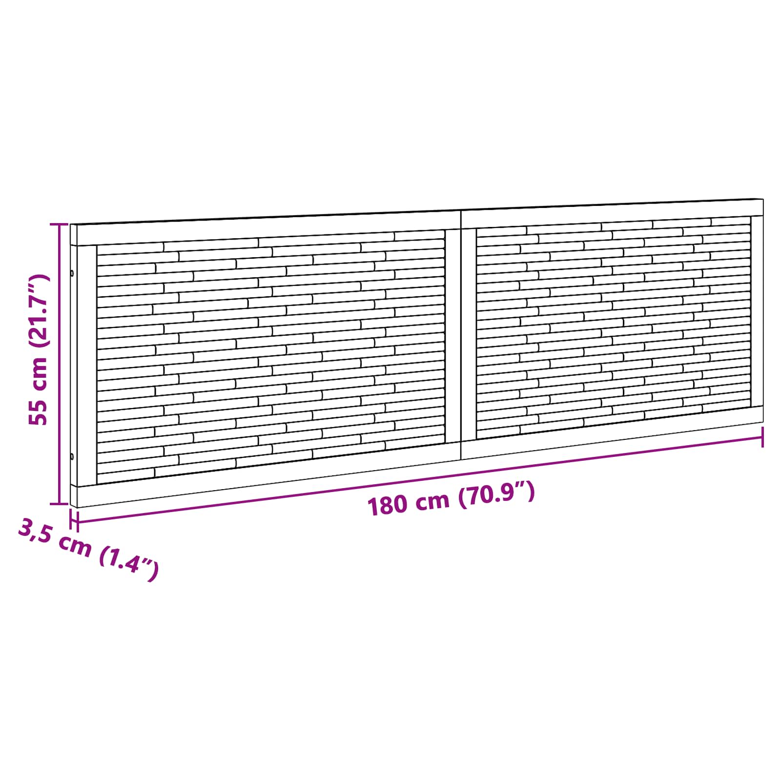 - Splošne dimenzije: 180 x 3,5 x 55 cm (D x Š x V)