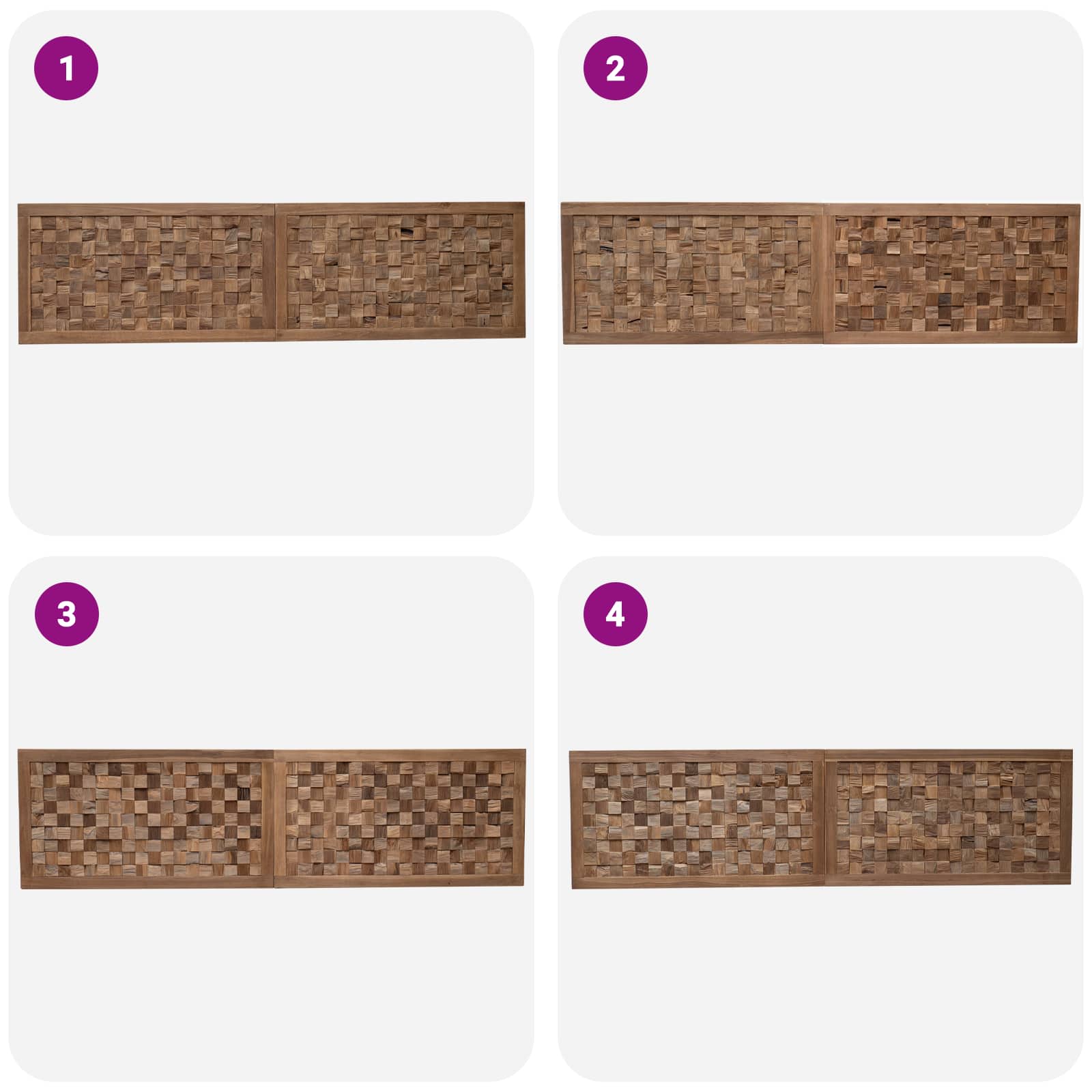 Vzglavje se odlikuje z edinstveno zasnovo, ki združuje rustikalni šarm in sodoben slog, kar je odlično za preoblikovanje vsake spalnice v prijetno zatočišče. Inovativni 3D učinek dodaja vizualno dimenzijo, zaradi česar je prava zvezda v prostoru. Njegova rustikalna obdelava prinaša toploto in udobje ter se lepo ujema z različnimi dekorativnimi temami, od podeželskega šika do modernih stilov. Premium material: Izdelano iz trdega tikovega lesa, to vzglavje je extra trpežno in odporno na vlago, zato bo dolgotrajno zadržalo svoj sijaj. Ta naravni material doda rustikalni in sofisticirani občutek ter ustvari prijeten ambijent v tvoji spalnici. Sistem za montažo na steno: Zasnovano je tako, da ponuja udobje in stabilnost, opremljeno z nosilci in vijaki za hitro namestitev. Ta sistem trdno drži vzglavje na mestu ter optimizira prostor v tvoji spalnici. 3D vizualna plastenje: Ta vzglavje vsebuje inovativno 3D zasnovo, ki dodaja globino ob steni ter ustvari atraktivno središče, ki pritegne pogled. Idealno za tiste, ki želijo dodati umetniški pridih svoji spalnici. Odporna konstrukcija: Zasnovano za vsakodnevno uporabo, to vzglavje je trpežno in odporno na obrabo, kar zagotavlja dolgotrajno zadovoljstvo brez žrtvovanja elegance. Osnovna nega: Da ohraniš njegovo čudovito površino, ga enostavno obriši s suho krpo, da odstraniš prah. Ta preprosta rutina vzdrževanja zagotavlja, da vzglavje ostane elegantno skozi čas.