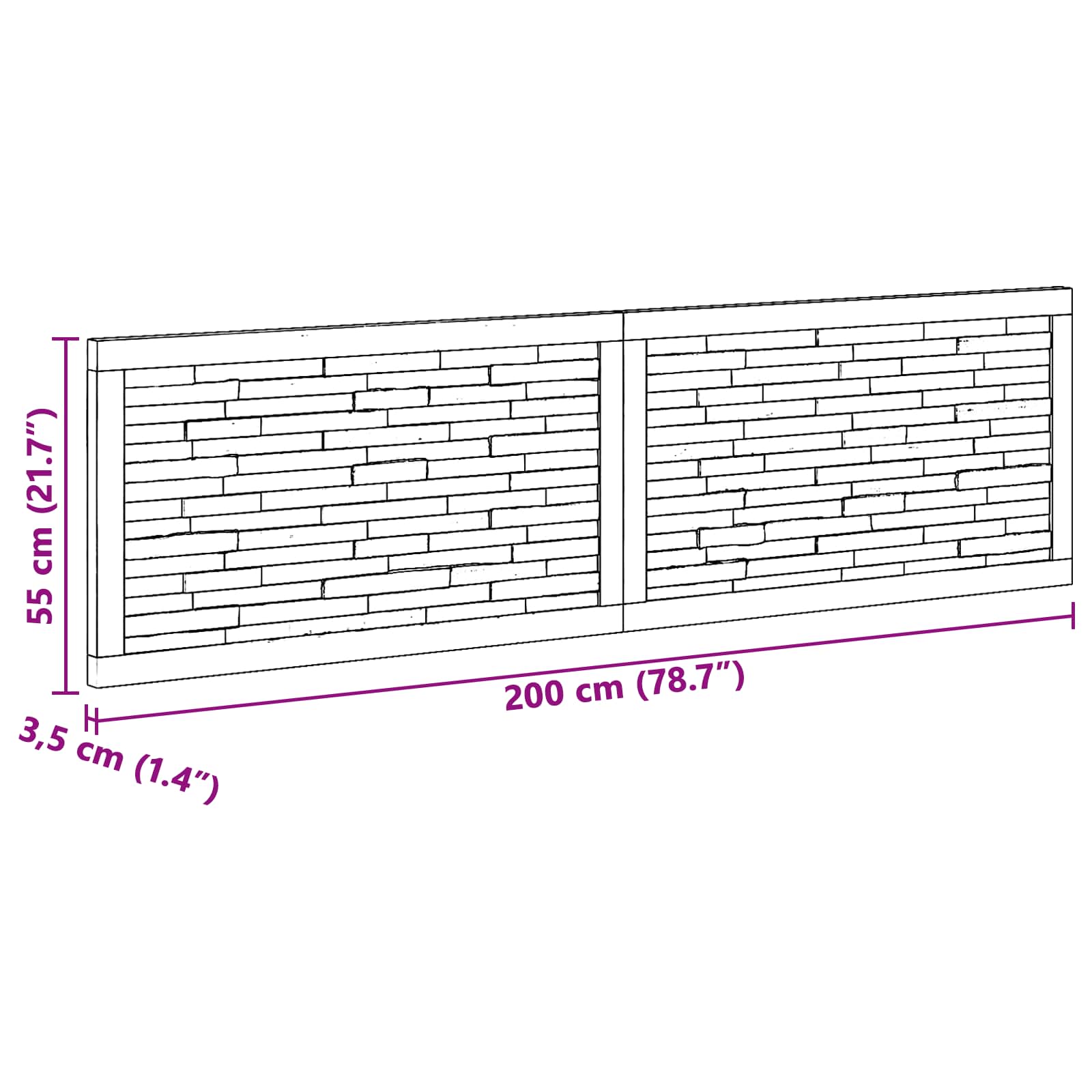 - Splošne dimenzije: 200 x 3,5 x 55 cm (D x Š x V)