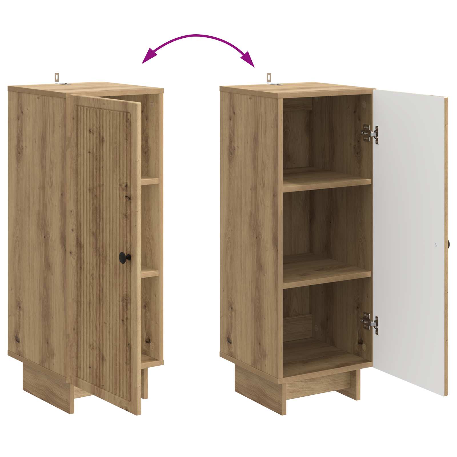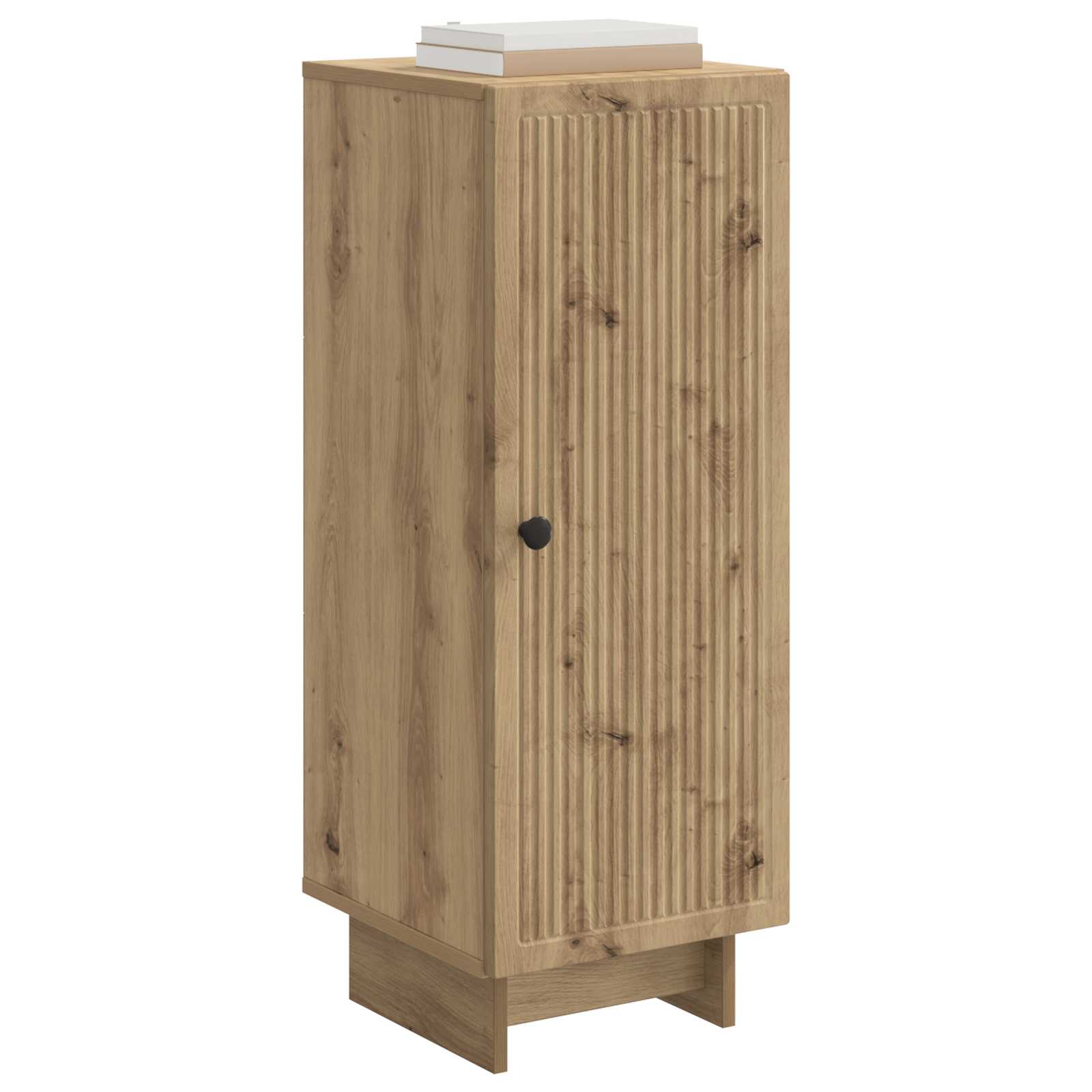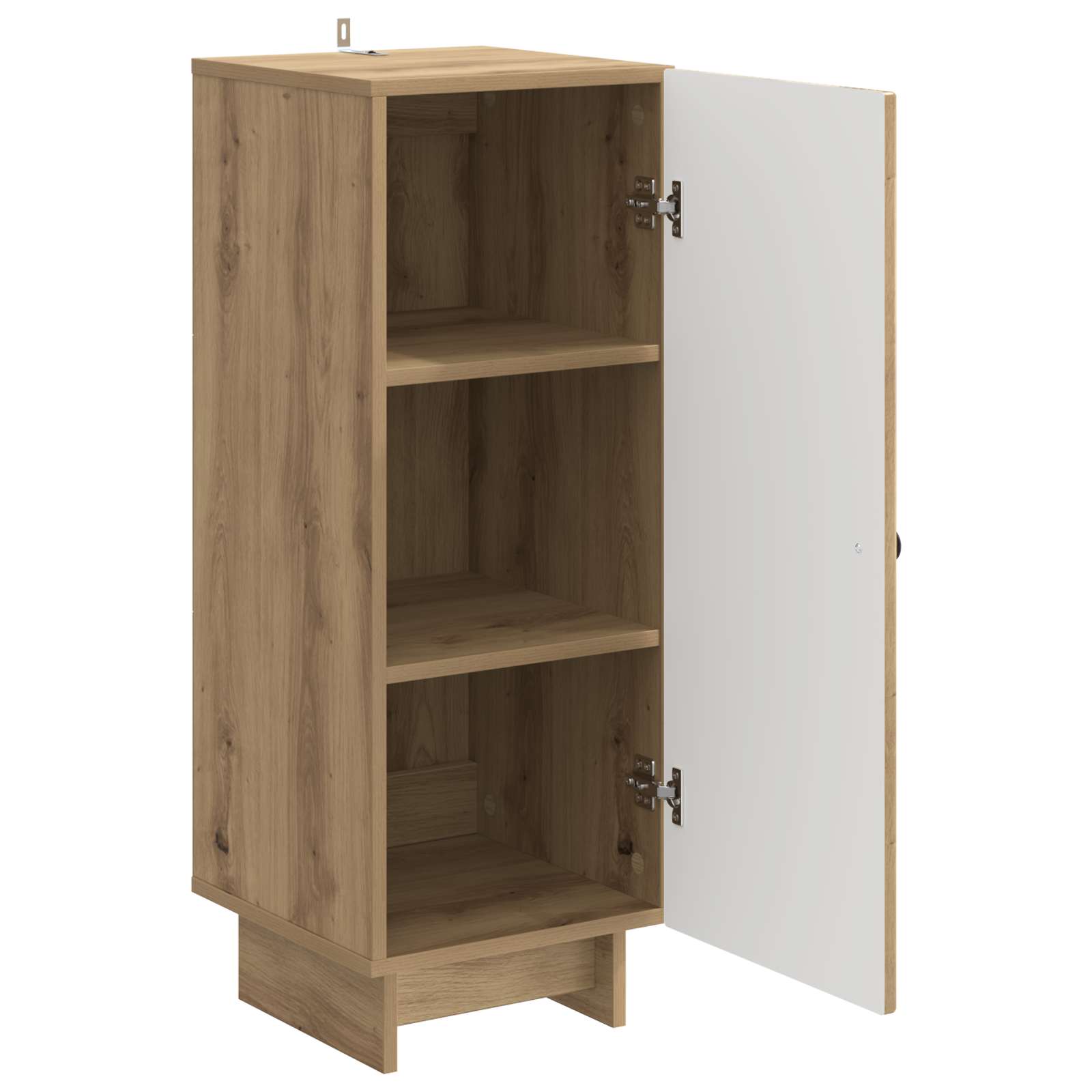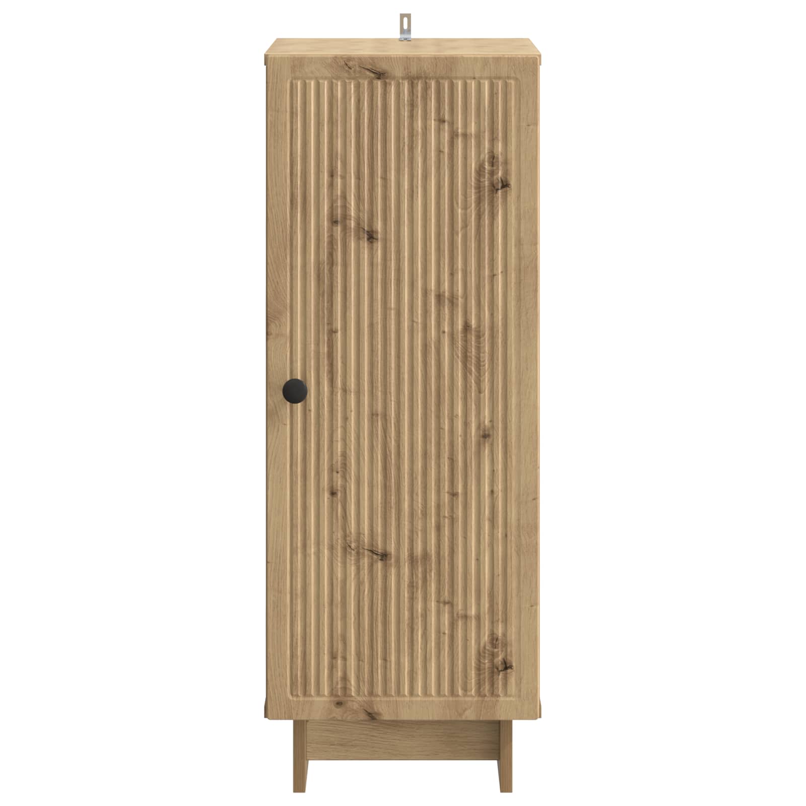 Ta moderna omarica združuje klasičen vintage slog s sodobno funkcionalnostjo in je odličen kos notranjega pohištva iz inženirskega lesa. Njena kvadratna oblika in minimalističen dizajn dodata poseben šarm vsaki dnevni sobi, kar jo dela popolno izbiro za vse, ki cenijo brezčasne estetike in uporabnost. Ne glede na to, ali želiš skriti nered ali razstaviti nekaj dekorativnih stvari, je ta omarica natančno to, kar potrebuješ – vsestranska in privlačna, je odlična priložnost, da pokažeš svoj stil. Premium inženirski les: Omarica je izdelana iz kvalitetnega inženirskega lesa, ki ji daje eleganten videz in hkrati trajnost, kar pomeni, da bo vzdržala vsakodnevno uporabo in ohranila svojo lepoto skozi čas. Prostorni shranjevalni prostori: Njena pravokotna zasnova ponuja veliko prostora za shranjevanje, kar pomaga pri organizaciji in ohranjanju reda. Z dovolj prostora za vse tvoje nujne potrebščine je idealna za pospravljanje. Funkcionalne dimenzije: Z dimenzijami 33 x 34,5 x 90 cm je ta omarica optimalna za izkoristek prostora brez prevelike gneče. Njena velikost je idealna za različne prostore, tudi manjše stanovanje, vendar še vedno nudi dobro rešitev za shranjevanje. Enostavna sestava zahtevana: Potrebuješ dve osebi in vrtalnik za sestavljanje, kar zagotavlja stabilnost in natančnost. Ko je sestavljena, njen eleganten dizajn in trdnost zagotavljata zanesljiv in trajen kos pohištva. Preprosto vzdrževanje: Z uporabo vlažne krpe je vzdrževanje te omarice zelo enostavno. Njena površina je enostavna za čiščenje, tako da lahko porabiš manj časa za vzdrževanje in več časa za uživanje v njenih funkcijah in lepoti.