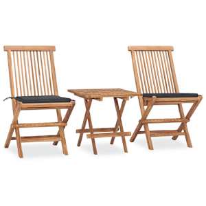 Zložljiva jedilna garnitura 3-delna z blazinami trdna tikovina