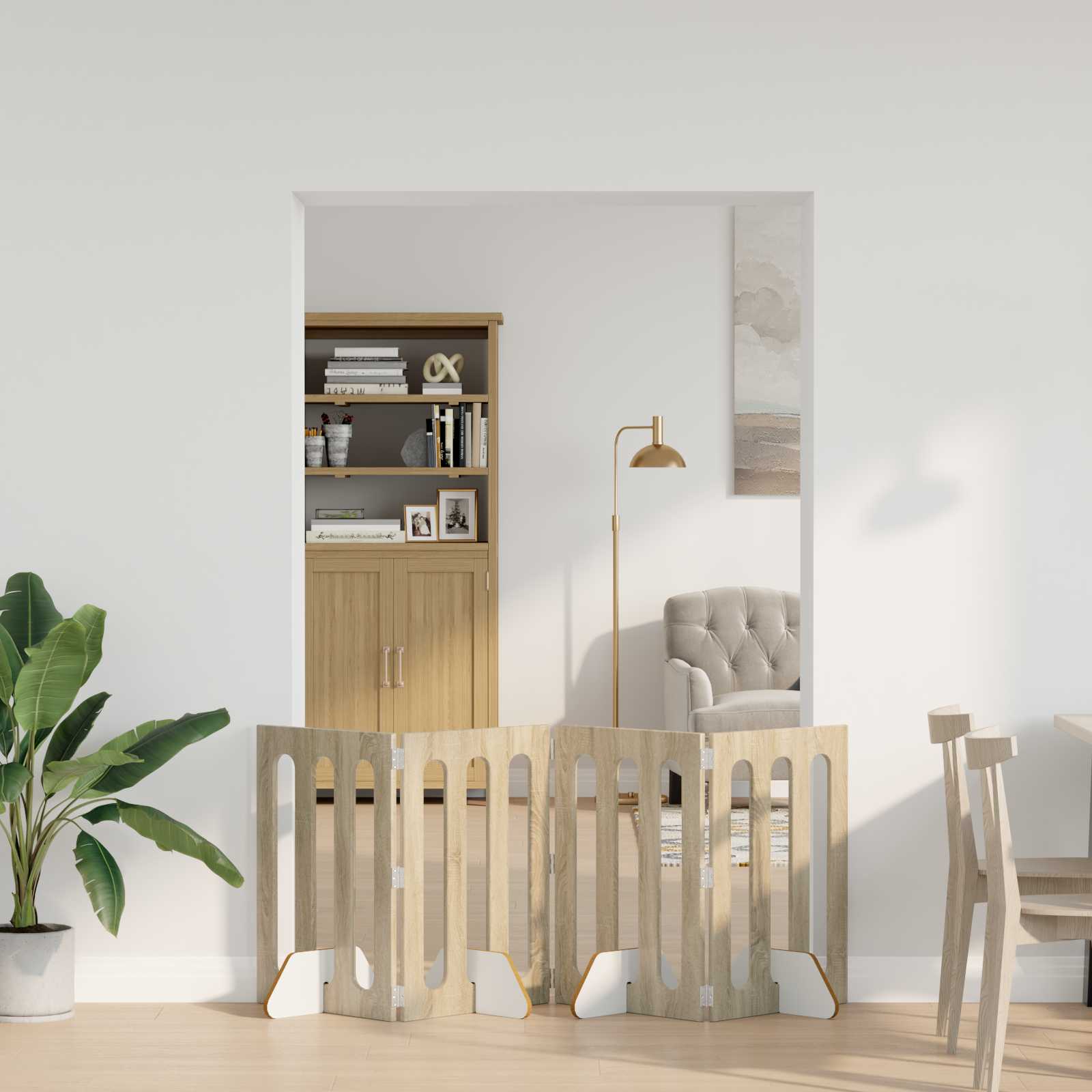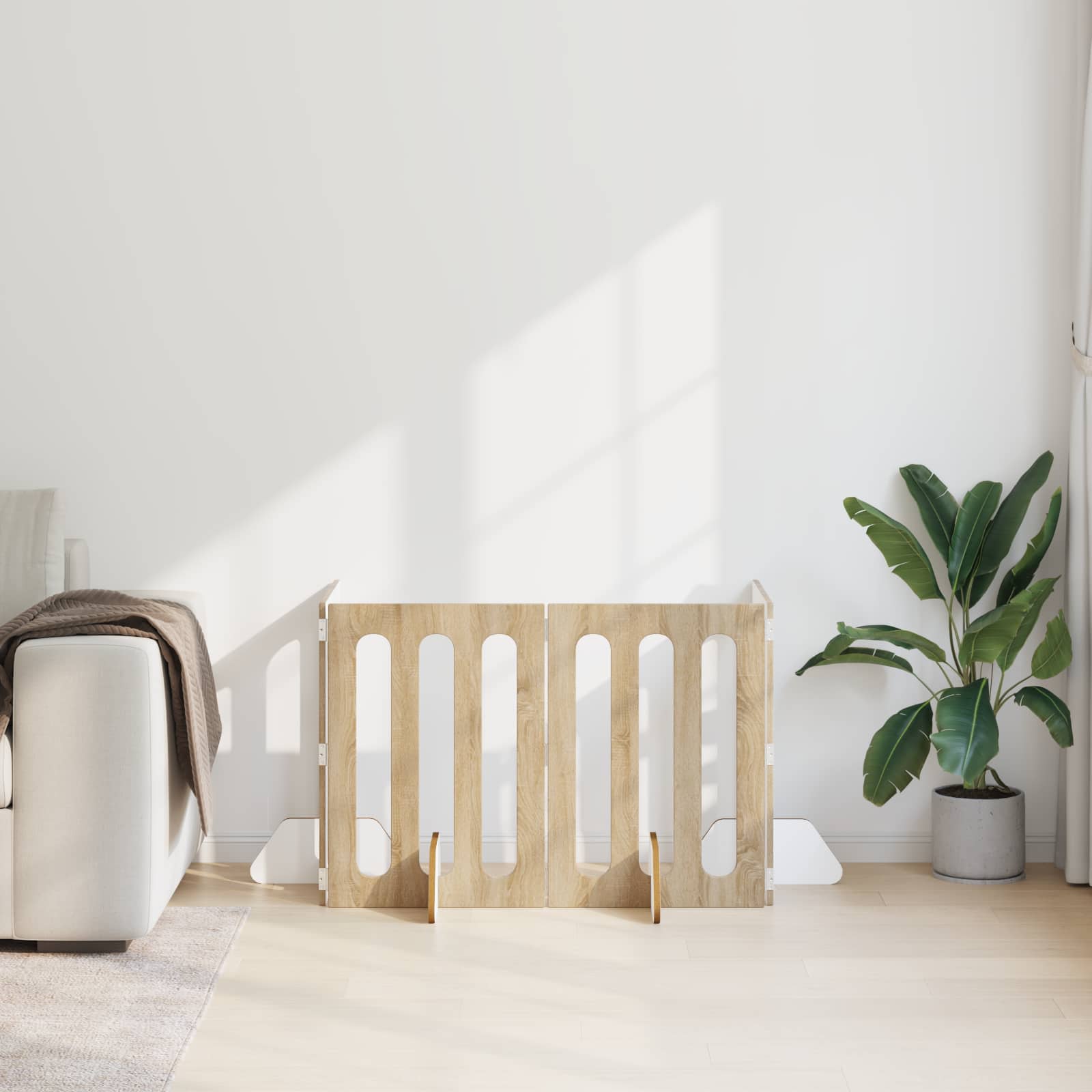 Ta praktični Folding Pet Fence je odlična rešitev za notranje prostore z prilagodljivimi mejami. Zgrajen iz trpežnega inženirskega lesa, njegov minimalistični dizajn brez težav ustreza kakršni koli sodobni notranjosti. Paneli se vrtijo in zložijo, tako da enostavno prilagodite postavitev glede na prostor. S preprosto sestavo brez vrtanja, ponuja varno in prilagodljivo rešitev, ki ščiti vaše stene in tla. Material iz inženirskega lesa: Izdelan iz inženirskega lesa, kar nudi trdno podporo in vzdržljivost za notranjo uporabo. Ponudite čist in moderen videz, ki se lepo ujema z različnimi stili notranje opreme. Prilagodljivi zložljivi paneli: Z več povezanimi paneli in vrtljivimi tečaji omogočajo do 180° premikanja. Ta zasnova omogoča uporabnikom, da prilagajajo obliko ograje za različne postavitve in vogale prostora. Enostavna sestava: Namestitev ne zahteva vrtanja, kar omogoča enostavno postavitev brez trajne škode na stenah ali tleh. Osredotoča se na poenostavitev namestitve, medtem ko ohranja stabilno postavitev. Priročno za notranjo uporabo: Namenjen notranjim prostorom, ovirec za hišne ljubljenčke se lahko uporablja za določanje meja v dnevnih sobah ali hodnikih. Njegov nevtralen dizajn omogoča, da deluje obstoječemu pohištvu brez vizualnih motenj. Enostavno vzdrževanje: Minimalno rutinsko vzdrževanje; preprosto obrišite z vlažno krpo. Izogibajte se abrazivnim materialom ali močnim čistilnim sredstvom, da ohranite lep videz skozi čas.