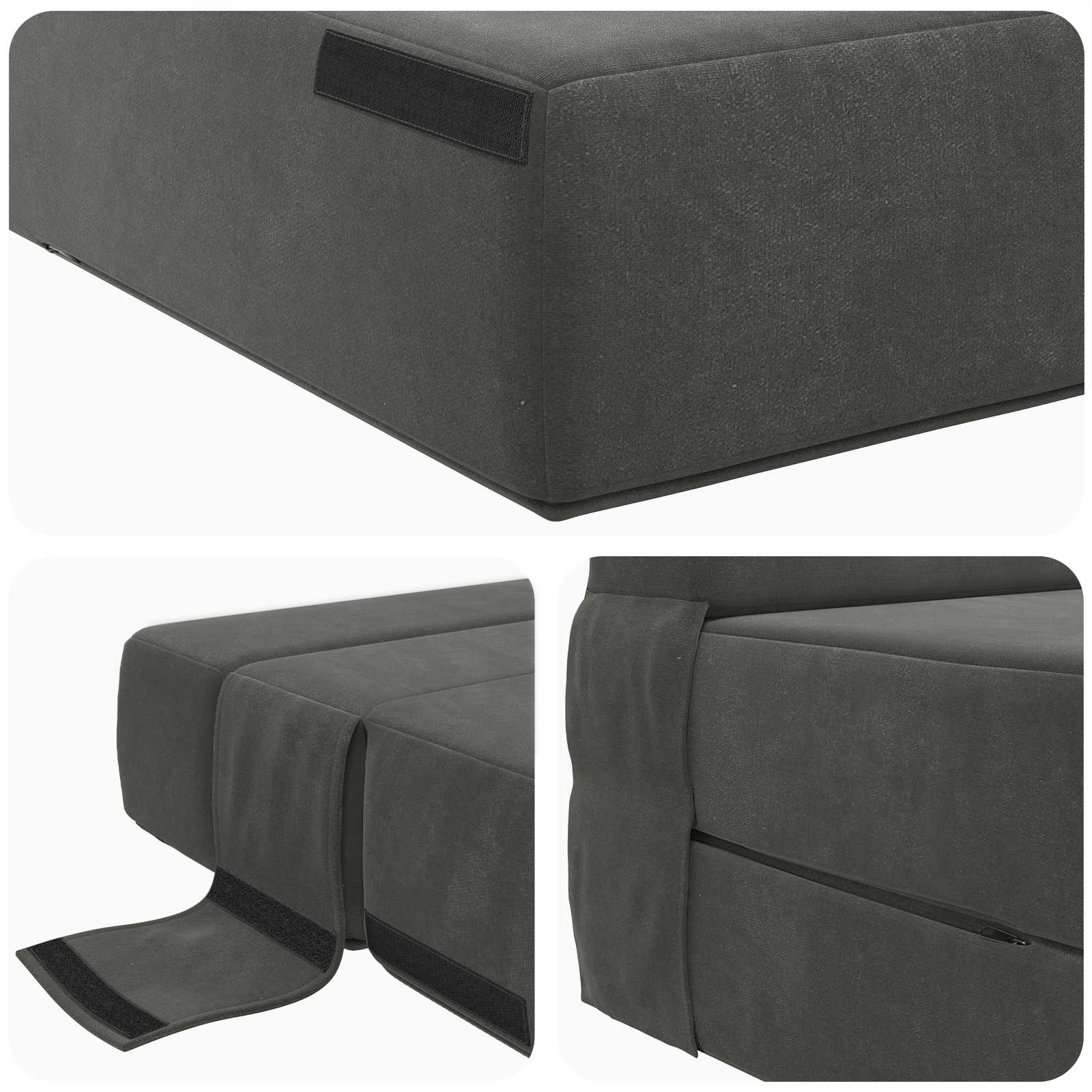 Ta moderna zložljiva kavč postelja je popoln kos pohištva za današnje notranje prostore, kot so spalnice in dnevne sobe. S preprosto pravokotno obliko se brez težav preobrača iz kompaktnosti kavča v posteljo polne dolžine, kar nudi šik in praktično rešitev za dnevno in nočno rabo. Njena estetika je moderna in minimalistična, kar jo naredi nevsiljivo dopolnilo sodobnim ali tradicionalnim interierjem. Dvopurposna narava kavča postelje se lepo prilagaja potrebam majhnih apartmajev ali fleksibilnih bivalnih prostorov, kar jo dela priljubljeno izbiro za tiste, ki iščejo večnamenske rešitve. Kvalitetni materiali: Ta kavč postelja ima dihalno in mehko tkanino, kar poskrbi za udobno izkušnjo tako pri sedenju kot ležanju. Uporabljena pena dodaja udobje in podporo, materiali pa so izbrani za dolgo življenjsko dobo, kar zagotavlja zanesljivost v pogosto obravnavanih prostorih. Zložljiva zasnova: S preprostim mehanizmom se ta kavč hitro pretvori iz elegantnega kavča v udobno posteljo. Idealna je za kompaktne prostore, kar omogoča enostavno prehod iz dnevnega sedenja v priložnostno posteljo za goste. Intuitiven postopek omogoča hitro prilagoditev brez zapletenih mehanizmov. Varčevanje s prostorom: Zložljiva narava te kavč postelje je idealna za ohranjanje talnega prostora v manjših bivalnih območjih. Ko jo ne potrebujete kot posteljo, jo preprosto zložite v kavč in optimizirate prostor. Varnost in stabilnost: Kavč postelja ima ježke, ki omogočajo varno nastavitev, kar ohrani pozicijo v obeh oblikah. Te zapirala zagotavljajo stabilnost in enostavno uporabo, kar zmanjšuje skrbi pri premikanju ali pozicioniranju. Enostavna nega: Nega je enostavna, saj so materiali obdelani za zmanjšanje madežev in obrabe. Tako je ta kos pohištva izjemno enostaven za čiščenje in vzdrževanje, kar mu omogoča dolgotrajno lepo videz. Redno brisanje ali občasno čiščenje večjih madežev je dovolj zahvaljujoč premišljenemu oblikovanju.