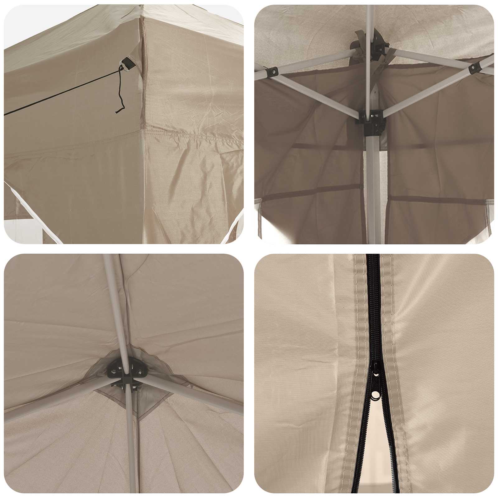 Sodobni šotor za zabave je narejen za izboljšanje vaših zunanjih dogodkov. Ima hiter postavitveni sistem, ki vam omogoči, da več časa preživite ob uživanju, namesto da bi se ukvarjali z logistiko. Ta šotor se prilega različnim priložnostim in nudi zaščito pred nepričakovanim vremenom z vodoodpornimi in UV-odpornimi materiali. Robusten Oxford tekstil: Naš šotor za zabave je narejen iz 210D Oxford tkanine, ki nudi odlično zaščito pred UV žarki in dežjem. Tako so vaši dogodki zaščiteni v soncu ali dežju, kar ga naredi idealnega za poletne zabave ali zunanje dogodke z nepredvidljivim vremenom. Prenosna torba: Šotor prihaja s priročno torbo za prenašanje, kar olajša transport in shranjevanje, ko ga ne potrebujete. Njegova kompaktna zasnova pomeni, da ga lahko enostavno prinesete s seboj na nepričakovane dogodke na prostem. Nastavljiv mehanizem: Naš šotor ima ročno nastavljiv sistem, ki vam omogoča izbiro med tremi nastavitvami višine, ki se gibljejo med 227-245 cm. Ta prilagodljivost je odlična za različne zunanje dogodke, od sproščenih družinskih srečanj do formalnih prireditev. Komponente za varno postavitev: Šotor ima vrvi za veter in klini za stabilno namestitev, kar zagotavlja varnost v vetrovnih razmerah. Te komponente pomagajo ohranjati šotor na mestu, kar vam daje mir med dogodki. Skupno uporabo skozi vse leto: Zasnovan za uporabo kadarkoli, je ta prenosni šotor primeren za različne potrebe skozi vse leto. Ne glede na to, ali prirejate poletni žar ali zimsko vrtno zabavo, njegova funkcionalna zasnova podpira vaš način življenja na prostem. Pri največjem raztezanju ogrodja ne prekrivajte blaga. V nasprotnem primeru se bo blago pretrgalo. Za stabilizacijo vsake noge je veliko bolje uporabiti votlo opeko. Izdelek ni primeren za vremenske razmere, kot so močan veter, sneženje in ekstremne vremenske razmere. Nekateri deli lahko vsebujejo ostre robove, zato po potrebi nosite zaščitne rokavice. Pred sestavljanjem preverite, ali imate vse dele. Otroke in živali naj bodo stran od območja montaže. Pred začetkom se prepričajte, da imate dovolj prostora za razporeditev delov. Ne sestavljajte ali razstavljajte med močnim vetrom. Vse vire ognja in toplote hranite stran od šotora.