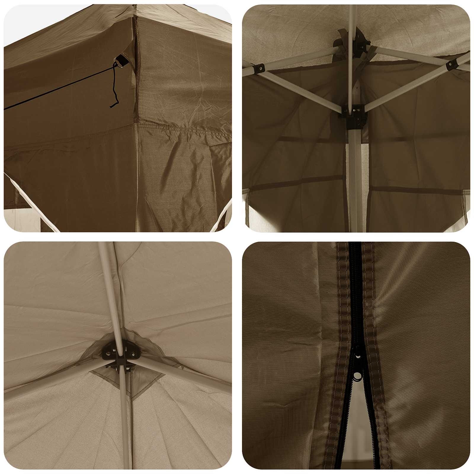 Sodobni šotor za zabave je narejen za izboljšanje vaših zunanjih dogodkov. Ima hiter postavitveni sistem, ki vam omogoči, da več časa preživite ob uživanju, namesto da bi se ukvarjali z logistiko. Ta šotor se prilega različnim priložnostim in nudi zaščito pred nepričakovanim vremenom z vodoodpornimi in UV-odpornimi materiali. Robusten Oxford tekstil: Naš šotor za zabave je narejen iz 210D Oxford tkanine, ki nudi odlično zaščito pred UV žarki in dežjem. Tako so vaši dogodki zaščiteni v soncu ali dežju, kar ga naredi idealnega za poletne zabave ali zunanje dogodke z nepredvidljivim vremenom. Prenosna torba: Šotor prihaja s priročno torbo za prenašanje, kar olajša transport in shranjevanje, ko ga ne potrebujete. Njegova kompaktna zasnova pomeni, da ga lahko enostavno prinesete s seboj na nepričakovane dogodke na prostem. Nastavljiv mehanizem: Naš šotor ima ročno nastavljiv sistem, ki vam omogoča izbiro med tremi nastavitvami višine, ki se gibljejo med 227-245 cm. Ta prilagodljivost je odlična za različne zunanje dogodke, od sproščenih družinskih srečanj do formalnih prireditev. Komponente za varno postavitev: Šotor ima vrvi za veter in klini za stabilno namestitev, kar zagotavlja varnost v vetrovnih razmerah. Te komponente pomagajo ohranjati šotor na mestu, kar vam daje mir med dogodki. Skupno uporabo skozi vse leto: Zasnovan za uporabo kadarkoli, je ta prenosni šotor primeren za različne potrebe skozi vse leto. Ne glede na to, ali prirejate poletni žar ali zimsko vrtno zabavo, njegova funkcionalna zasnova podpira vaš način življenja na prostem. Pri največjem raztezanju ogrodja ne prekrivajte blaga. V nasprotnem primeru se bo blago pretrgalo. Za stabilizacijo vsake noge je veliko bolje uporabiti votlo opeko. Izdelek ni primeren za vremenske razmere, kot so močan veter, sneženje in ekstremne vremenske razmere. Nekateri deli lahko vsebujejo ostre robove, zato po potrebi nosite zaščitne rokavice. Pred sestavljanjem preverite, ali imate vse dele. Otroke in živali naj bodo stran od območja montaže. Pred začetkom se prepričajte, da imate dovolj prostora za razporeditev delov. Ne sestavljajte ali razstavljajte med močnim vetrom. Vse vire ognja in toplote hranite stran od šotora.