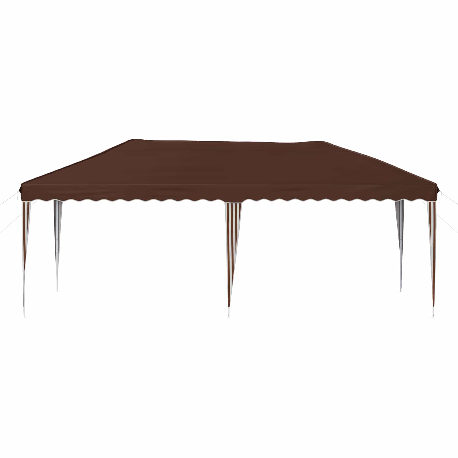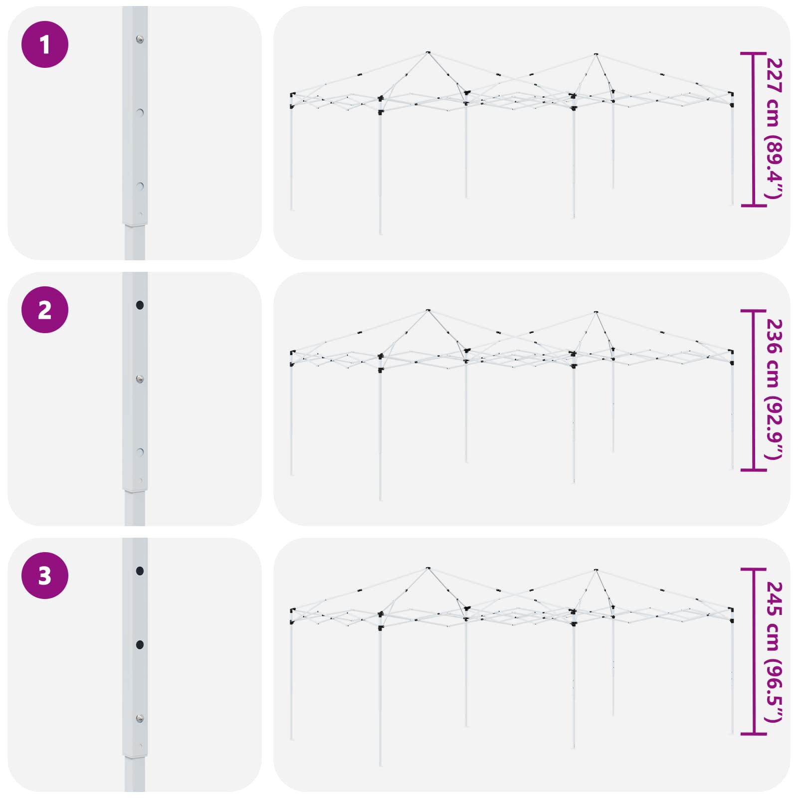Ta pop-up šotor je prava rešitev za vaša poletna druženja. Ponuja obsežen prostor, kjer se vaši gostje lahko udobno namestijo. Zgrajen je iz vremensko odpornih materialov, ki vas ščitijo pred soncem in rahlim dežjem, kar omogoča, da se vaš dogodek odvija brez skrbi. Z nastavljivim mehanizmom za višino lahko enostavno prilagodite postavitev, kar dodaja prilagodljivost vašim zunanjim dogodkom. Pop-up zasnova: Šotor se hitro postavi z enostavnim mehanizmom, kar vam omogoča, da se osredotočite na zabavo. Nastavljiv mehanizem višine: Ima ročno nastavitev s tremi stopnjami, kar pomeni, da se prilagodi različnim priložnostim. Prašno lakiran jekleni okvir: Zasnova je stabilna in trdna, kar zagotavlja brezskrbno uporabo, tudi v spremenljivih vremenskih pogojih. Vremensko odporen: Ta šotor je vodoodporen in UV zaščiten, kar zmanjšuje tveganje za poškodbe zaradi sonca in dežja. Široka uporaba: Odličen je za zabave, tržnice, piknike in še več, saj nudi zaščito v različnih situacijah. Pri največjem raztezanju ogrodja ne prekrivajte blaga. V nasprotnem primeru se bo blago pretrgalo. Za stabilizacijo vsake noge je veliko bolje uporabiti votlo opeko. Izdelek ni primeren za vremenske razmere, kot so močan veter, sneženje in ekstremne vremenske razmere. Nekateri deli lahko vsebujejo ostre robove, zato po potrebi nosite zaščitne rokavice. Pred sestavljanjem preverite, ali imate vse dele. Otroke in živali naj bodo stran od območja montaže. Pred začetkom se prepričajte, da imate dovolj prostora za razporeditev delov. Ne sestavljajte ali razstavljajte med močnim vetrom. Vse vire ognja in toplote hranite stran od šotora.