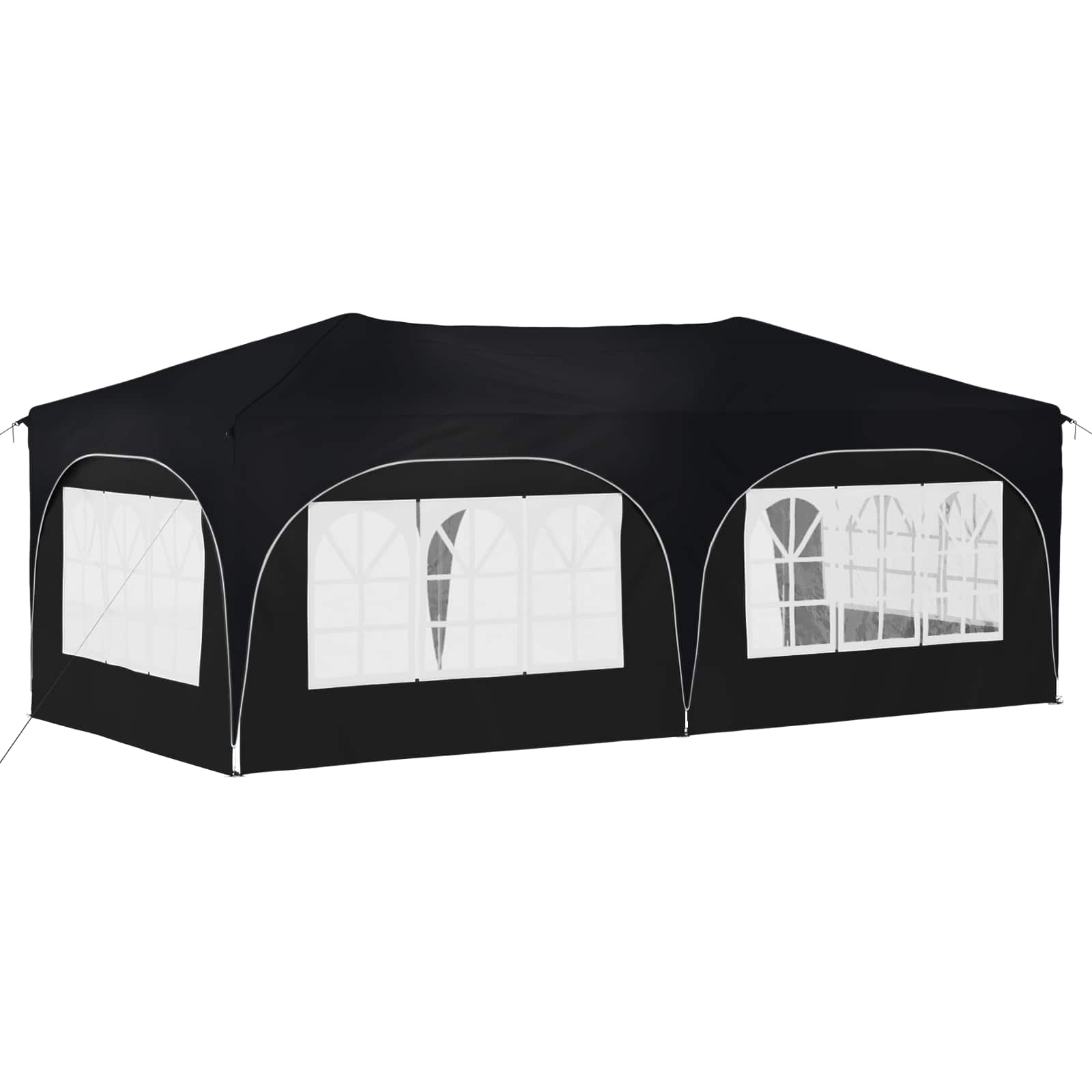 Ta večnamenski šotor za zabave bo vaše zunanje dogodke spremenil v nepozabne izkušnje. Z vrhunskim Oxford tkanjem daje sodoben pridih, s čistimi linijami in funkcionalnostjo. Ne glede na to, ali organizirate vrtnarsko zabavo, poroko ali kakšen večji zunanji dogodek, ta šotor nudi zaščito in prijetno vzdušje. Z veliko pokritostjo in elegantnim dizajnom kombinira stil in funkcionalnost ter izboljšuje vsak dogodek s svojo prisotnostjo. Trajna Oxford tkanina: Glavni material šotora, Oxford tkanina, zagotavlja odlično odpornost proti vremenskim vplivom. Odlikujejo jo vodoodporne lastnosti in UV zaščita, kar omogoča, da vaš prostor pod šotorom ostane udoben in zaščiten pred soncem in rahlim dežjem. Prilagoditev višine: Šotor je mogoče prilagoditi na tri različne višine, kar omogoča fleksibilno zaščito za različne tipe dogodkov. Ne glede na to, ali je to intimno srečanje ali velika prireditev, prilagoditev višine doda uporabnost in optimalno pokritost. Obsežna oprema: Vsebuje 4 vrvice proti vetru in 8 zemeljskih žebljev, kar zagotavlja stabilnost in odpornost na veter. Enostavna postavitev je zasnovana za dva, kar poenostavi proces in je priročna. Hitra postavitev: Ta šotor je opremljen z mehanizmom za hitro postavitev, kar odpravlja dolge postopke postavitve. To je super za gostitelje, ki želijo prihraniti čas in energijo ter hitro pripraviti prostor za goste. Navodila za oskrbo: Da ohranite šotor v dobrem stanju, se izogibajte grobim kemikalijam. S pravilno oskrbo bo material in struktura dolgo vzdržala, kar omogoča dolgotrajno uživanje pri različnih dogodkih. Pri največjem raztezanju ogrodja ne prekrivajte blaga. V nasprotnem primeru se bo blago pretrgalo. Za stabilizacijo vsake noge je veliko bolje uporabiti votlo opeko. Izdelek ni primeren za vremenske razmere, kot so močan veter, sneženje in ekstremne vremenske razmere. Nekateri deli lahko vsebujejo ostre robove, zato po potrebi nosite zaščitne rokavice. Pred sestavljanjem preverite, ali imate vse dele. Otroke in živali naj bodo stran od območja montaže. Pred začetkom se prepričajte, da imate dovolj prostora za razporeditev delov. Ne sestavljajte ali razstavljajte med močnim vetrom. Vse vire ognja in toplote hranite stran od šotora.