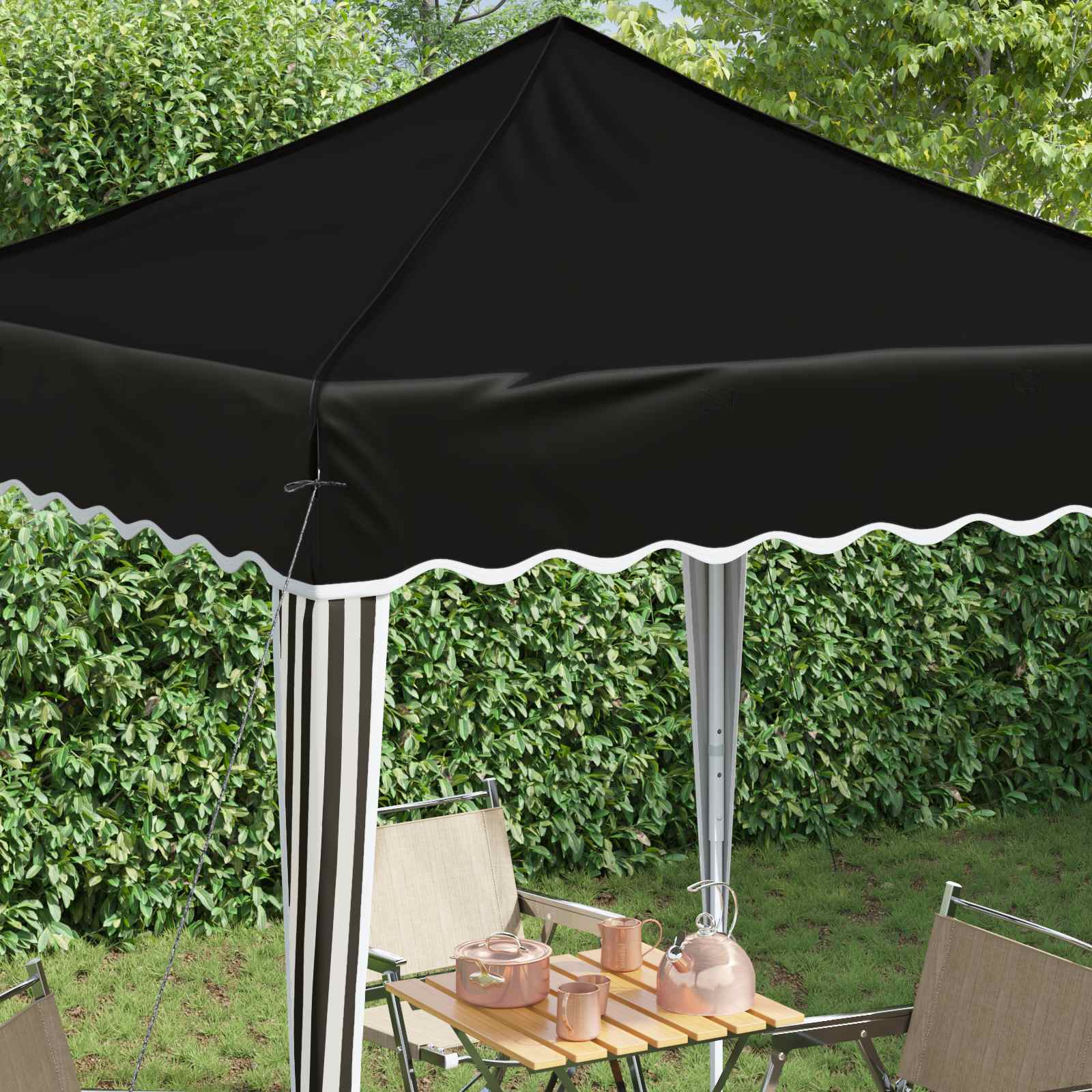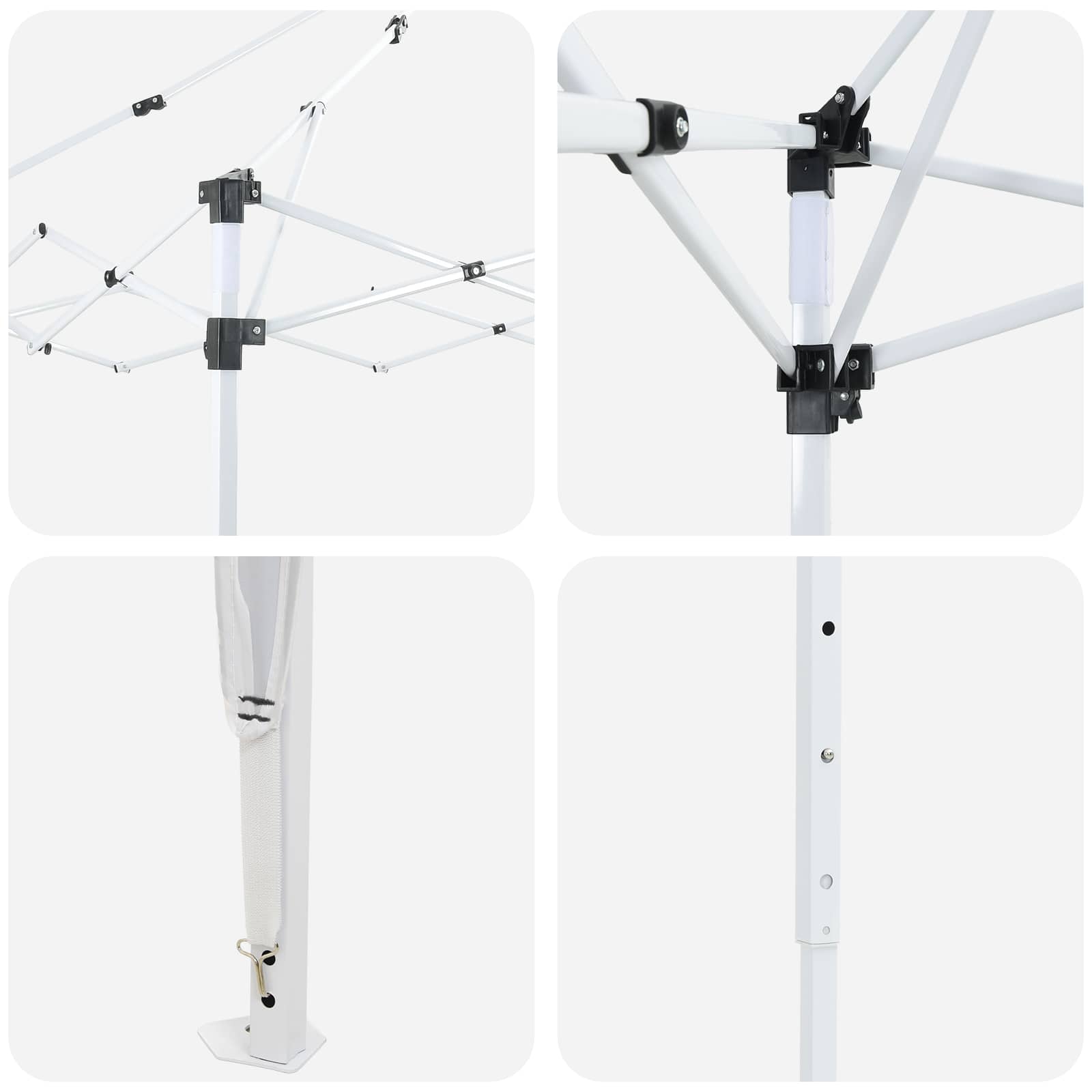 Ta šotor za zabave s hitro postavitvijo je popolna rešitev za zunanje dogodke in doda moderno eleganco vsakemu prostoru. S svojimi čistimi linijami in funkcionalnim dizajnom vabi goste, da uživajo v prostoru za raznolike dogodke. Ne glede na to, ali gre za sproščeno dvoriščno srečanje ali formalno priložnost, ta šotor izboljša vzdušje s svojo uporabnostjo in estetiko. Material Oxford tkanina Ta šotor je izdelan iz kakovostne Oxford tkanine, znane po svoji trpežnosti in dolgi dobi trajanja. Ponuja eleganten videz, ki se dobro poda različnim zunanjim dekorjem, naj gre za zabave, poroke ali posebne dogodke. Zaščita pred UV sevanjem zagotavlja, da so gostje zaščiteni pred sončnimi žarki med dnevnim praznovanjem. Nastavljiv mehanizem višine Ta šotor ima preprost ročni mehanizem za nastavljanje, ki ponuja tri višinske ravni, kar ustreza različnim potrebam dogodkov. Ne glede na to, ali želite prijetno vzdušje ali prostoren prostor, te višinske opcije nudijo prilagodljivost. Nastavitve so enostavne in ne zahtevajo orodja. Premaz proti vremenskim vplivom Prašno lakirana jeklena konstrukcija daje šotoru odlično stabilnost in dolgotrajnost. Ta zaščiten premaz ščiti pred vremenskimi vplivi in obrabo, hkrati pa nudi vodoodpornost, zahvaljujoč kateri se šotor spoprijema z različnimi vremenskimi pogoji, kar zagotavlja mirnost na zunanjih dogodkih. Oblikovanje z hitro postavitvijo Šotor z intuitivnim mehanizmom za hitro postavitev omogoča enostavno postavitev v le nekaj minutah. To prihrani čas in trud ter omogoča lažjo pripravo pred in po dogodkih. Vse se postavi hitro in učinkovito. Navodila za vzdrževanje Održevanje šotora je zelo enostavno: redno obrišite s površin z mehko, suho krpo, da odstranite umazanijo. Izogibajte se močnih kemikalij, da ne poškodujete materiala. Ko ga ne uporabljate, ga shranite suhega, da podaljšate življenjsko dobo in obdržite privlačnost ter funkcionalnost za prihodnje dogodke. Pri največjem raztezanju ogrodja ne prekrivajte blaga. V nasprotnem primeru se bo blago pretrgalo. Za stabilizacijo vsake noge je veliko bolje uporabiti votlo opeko. Izdelek ni primeren za vremenske razmere, kot so močan veter, sneženje in ekstremne vremenske razmere. Nekateri deli lahko vsebujejo ostre robove, zato po potrebi nosite zaščitne rokavice. Pred sestavljanjem preverite, ali imate vse dele. Otroke in živali naj bodo stran od območja montaže. Pred začetkom se prepričajte, da imate dovolj prostora za razporeditev delov. Ne sestavljajte ali razstavljajte med močnim vetrom. Vse vire ognja in toplote hranite stran od šotora.