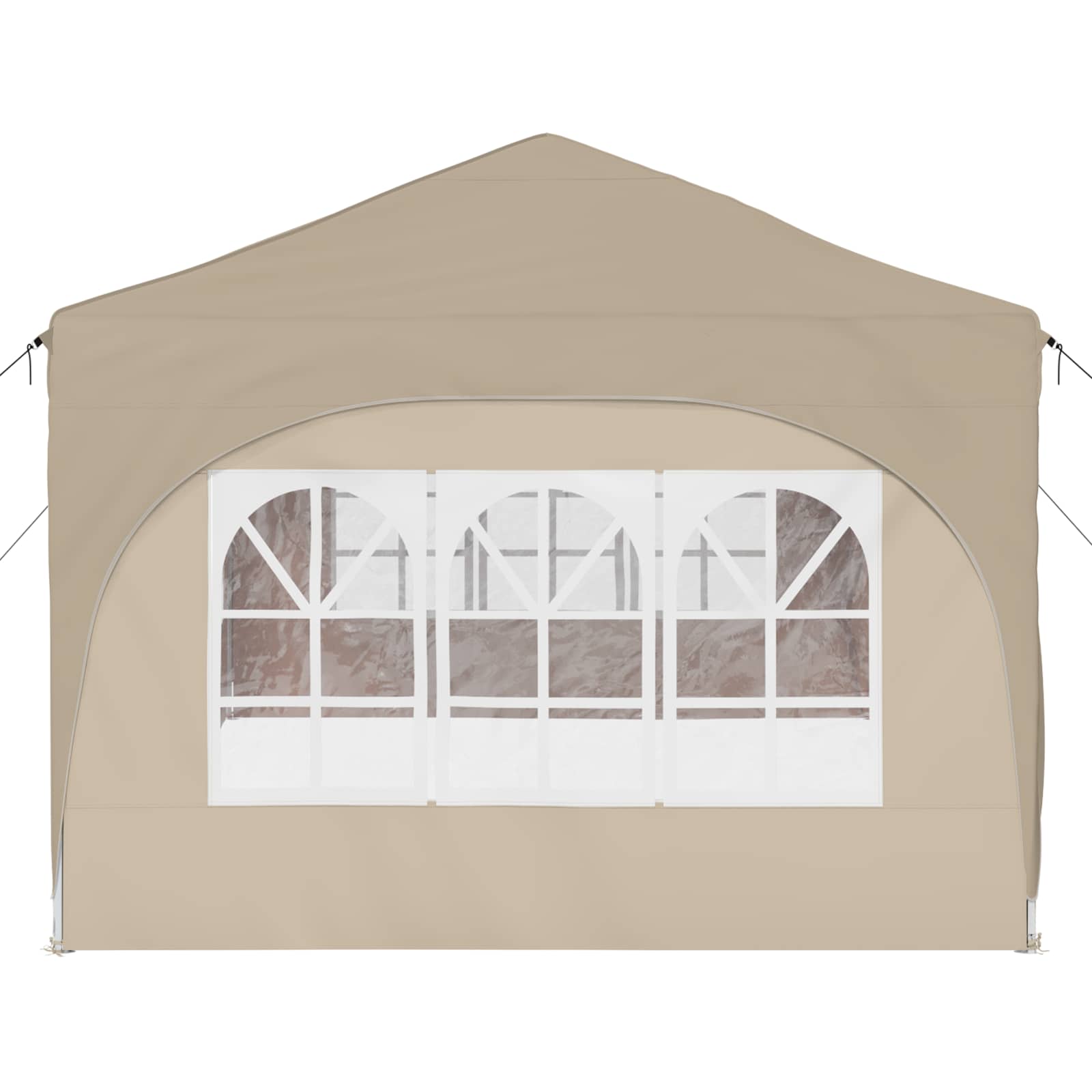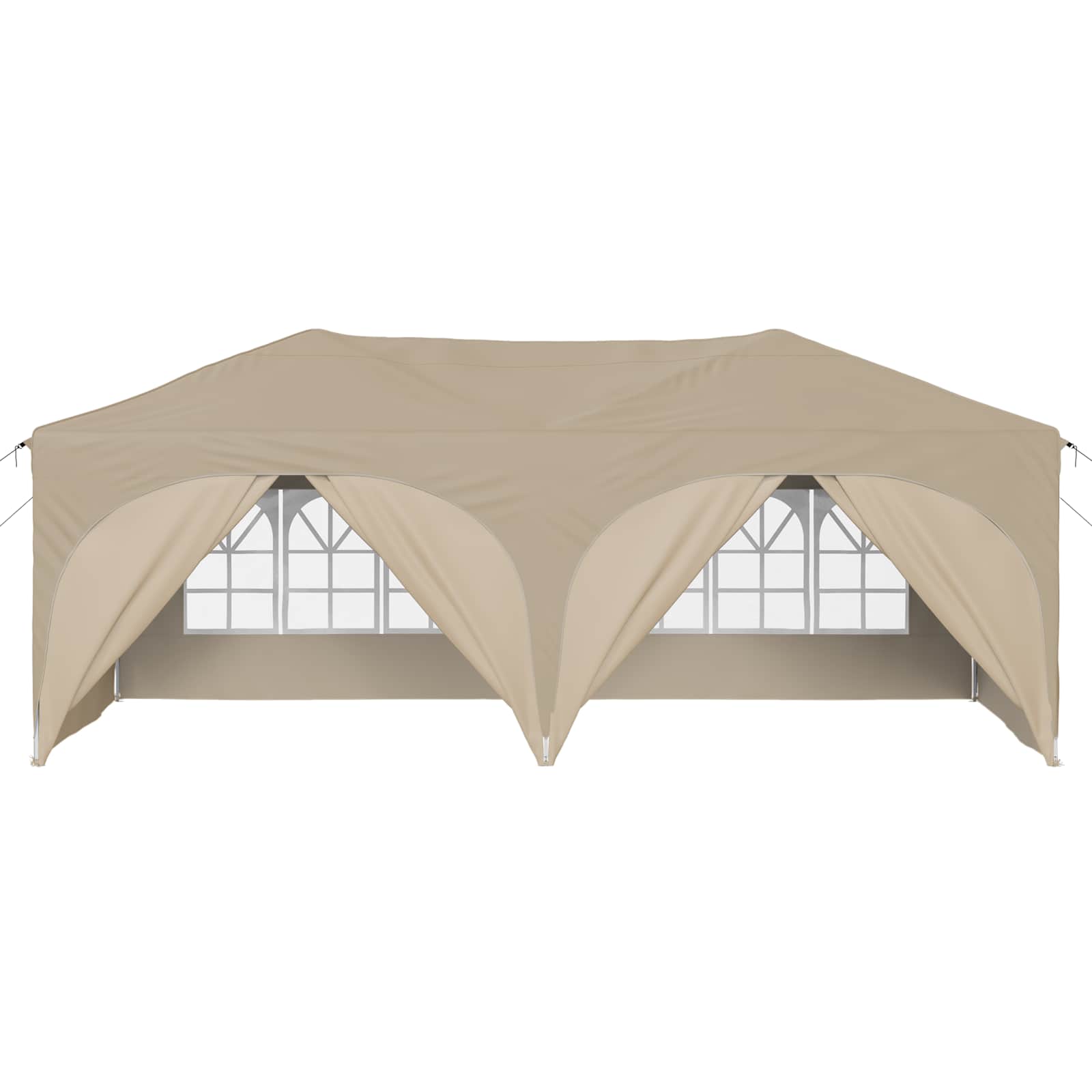 Ta večnamenski šotor za zabave bo vaše zunanje dogodke spremenil v nepozabne izkušnje. Z vrhunskim Oxford tkanjem daje sodoben pridih, s čistimi linijami in funkcionalnostjo. Ne glede na to, ali organizirate vrtnarsko zabavo, poroko ali kakšen večji zunanji dogodek, ta šotor nudi zaščito in prijetno vzdušje. Z veliko pokritostjo in elegantnim dizajnom kombinira stil in funkcionalnost ter izboljšuje vsak dogodek s svojo prisotnostjo. Trajna Oxford tkanina: Glavni material šotora, Oxford tkanina, zagotavlja odlično odpornost proti vremenskim vplivom. Odlikujejo jo vodoodporne lastnosti in UV zaščita, kar omogoča, da vaš prostor pod šotorom ostane udoben in zaščiten pred soncem in rahlim dežjem. Prilagoditev višine: Šotor je mogoče prilagoditi na tri različne višine, kar omogoča fleksibilno zaščito za različne tipe dogodkov. Ne glede na to, ali je to intimno srečanje ali velika prireditev, prilagoditev višine doda uporabnost in optimalno pokritost. Obsežna oprema: Vsebuje 4 vrvice proti vetru in 8 zemeljskih žebljev, kar zagotavlja stabilnost in odpornost na veter. Enostavna postavitev je zasnovana za dva, kar poenostavi proces in je priročna. Hitra postavitev: Ta šotor je opremljen z mehanizmom za hitro postavitev, kar odpravlja dolge postopke postavitve. To je super za gostitelje, ki želijo prihraniti čas in energijo ter hitro pripraviti prostor za goste. Navodila za oskrbo: Da ohranite šotor v dobrem stanju, se izogibajte grobim kemikalijam. S pravilno oskrbo bo material in struktura dolgo vzdržala, kar omogoča dolgotrajno uživanje pri različnih dogodkih. Pri največjem raztezanju ogrodja ne prekrivajte blaga. V nasprotnem primeru se bo blago pretrgalo. Za stabilizacijo vsake noge je veliko bolje uporabiti votlo opeko. Izdelek ni primeren za vremenske razmere, kot so močan veter, sneženje in ekstremne vremenske razmere. Nekateri deli lahko vsebujejo ostre robove, zato po potrebi nosite zaščitne rokavice. Pred sestavljanjem preverite, ali imate vse dele. Otroke in živali naj bodo stran od območja montaže. Pred začetkom se prepričajte, da imate dovolj prostora za razporeditev delov. Ne sestavljajte ali razstavljajte med močnim vetrom. Vse vire ognja in toplote hranite stran od šotora.