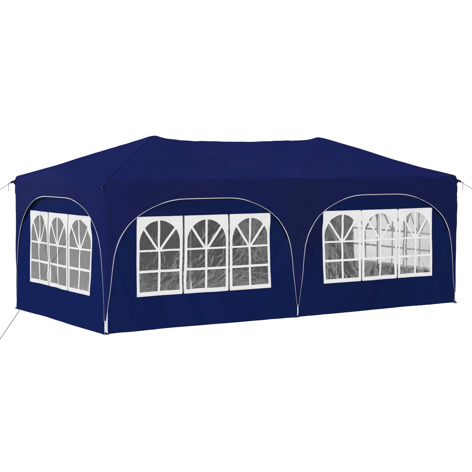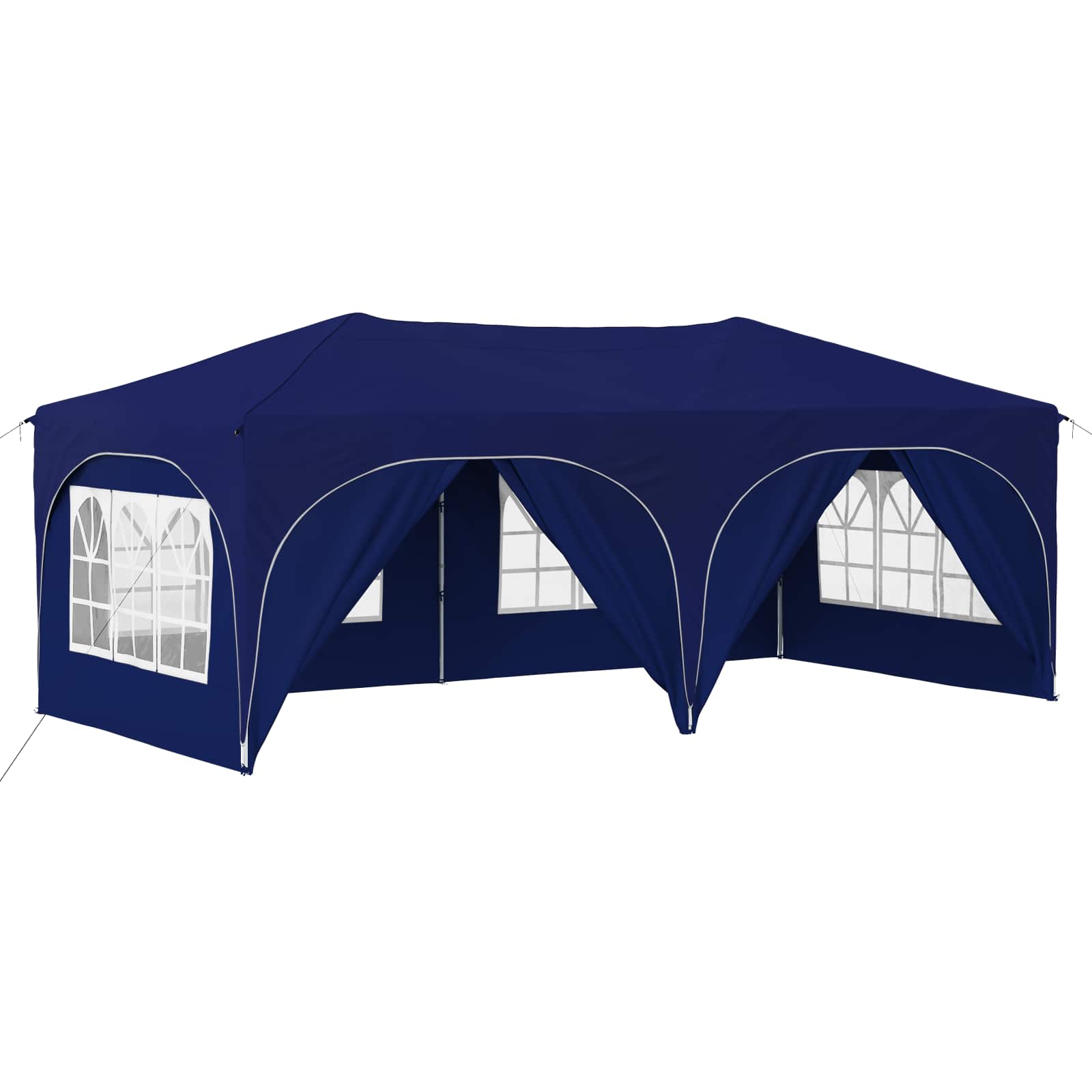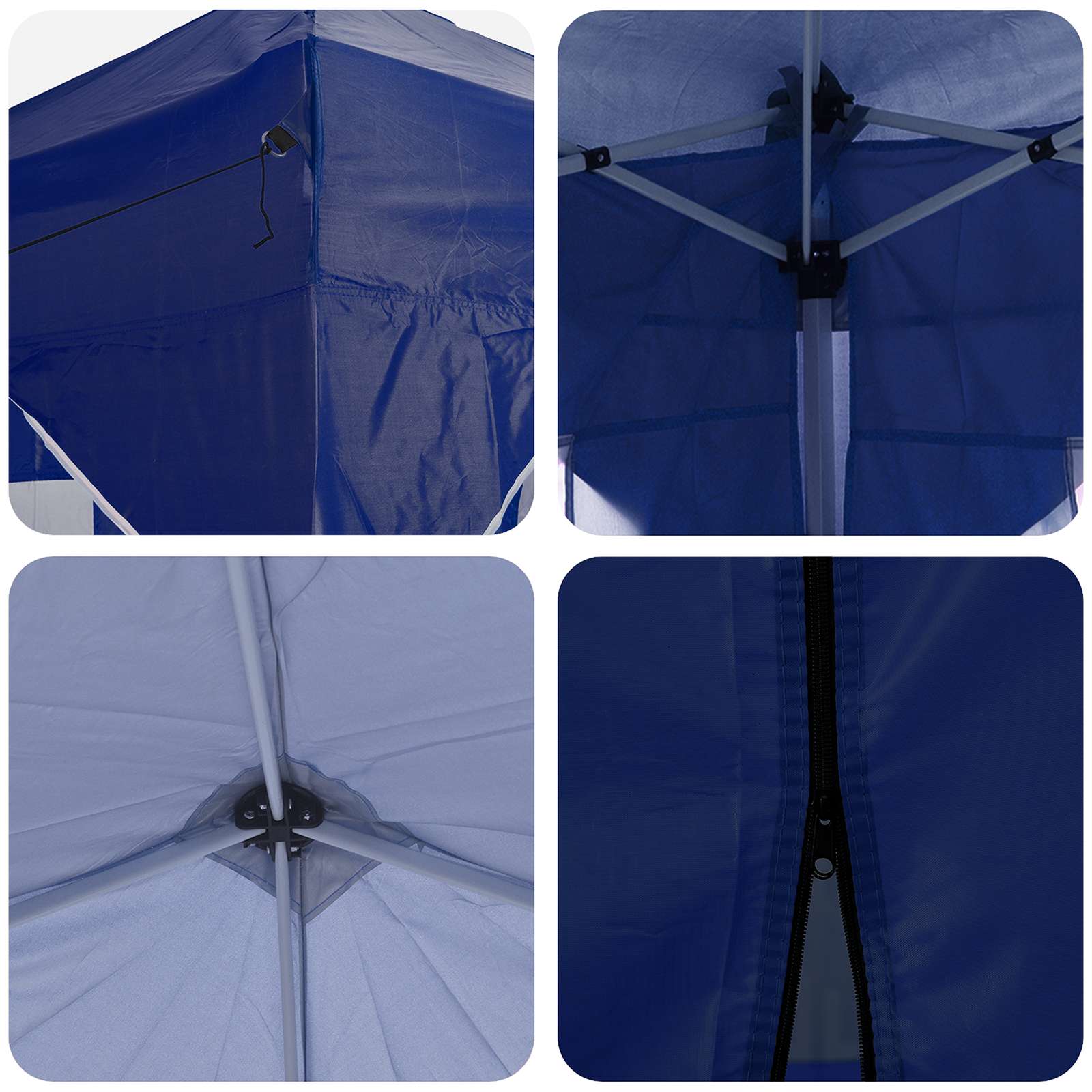 Ta večnamenski šotor za zabave bo vaše zunanje dogodke spremenil v nepozabne izkušnje. Z vrhunskim Oxford tkanjem daje sodoben pridih, s čistimi linijami in funkcionalnostjo. Ne glede na to, ali organizirate vrtnarsko zabavo, poroko ali kakšen večji zunanji dogodek, ta šotor nudi zaščito in prijetno vzdušje. Z veliko pokritostjo in elegantnim dizajnom kombinira stil in funkcionalnost ter izboljšuje vsak dogodek s svojo prisotnostjo. Trajna Oxford tkanina: Glavni material šotora, Oxford tkanina, zagotavlja odlično odpornost proti vremenskim vplivom. Odlikujejo jo vodoodporne lastnosti in UV zaščita, kar omogoča, da vaš prostor pod šotorom ostane udoben in zaščiten pred soncem in rahlim dežjem. Prilagoditev višine: Šotor je mogoče prilagoditi na tri različne višine, kar omogoča fleksibilno zaščito za različne tipe dogodkov. Ne glede na to, ali je to intimno srečanje ali velika prireditev, prilagoditev višine doda uporabnost in optimalno pokritost. Obsežna oprema: Vsebuje 4 vrvice proti vetru in 8 zemeljskih žebljev, kar zagotavlja stabilnost in odpornost na veter. Enostavna postavitev je zasnovana za dva, kar poenostavi proces in je priročna. Hitra postavitev: Ta šotor je opremljen z mehanizmom za hitro postavitev, kar odpravlja dolge postopke postavitve. To je super za gostitelje, ki želijo prihraniti čas in energijo ter hitro pripraviti prostor za goste. Navodila za oskrbo: Da ohranite šotor v dobrem stanju, se izogibajte grobim kemikalijam. S pravilno oskrbo bo material in struktura dolgo vzdržala, kar omogoča dolgotrajno uživanje pri različnih dogodkih. Pri največjem raztezanju ogrodja ne prekrivajte blaga. V nasprotnem primeru se bo blago pretrgalo. Za stabilizacijo vsake noge je veliko bolje uporabiti votlo opeko. Izdelek ni primeren za vremenske razmere, kot so močan veter, sneženje in ekstremne vremenske razmere. Nekateri deli lahko vsebujejo ostre robove, zato po potrebi nosite zaščitne rokavice. Pred sestavljanjem preverite, ali imate vse dele. Otroke in živali naj bodo stran od območja montaže. Pred začetkom se prepričajte, da imate dovolj prostora za razporeditev delov. Ne sestavljajte ali razstavljajte med močnim vetrom. Vse vire ognja in toplote hranite stran od šotora.