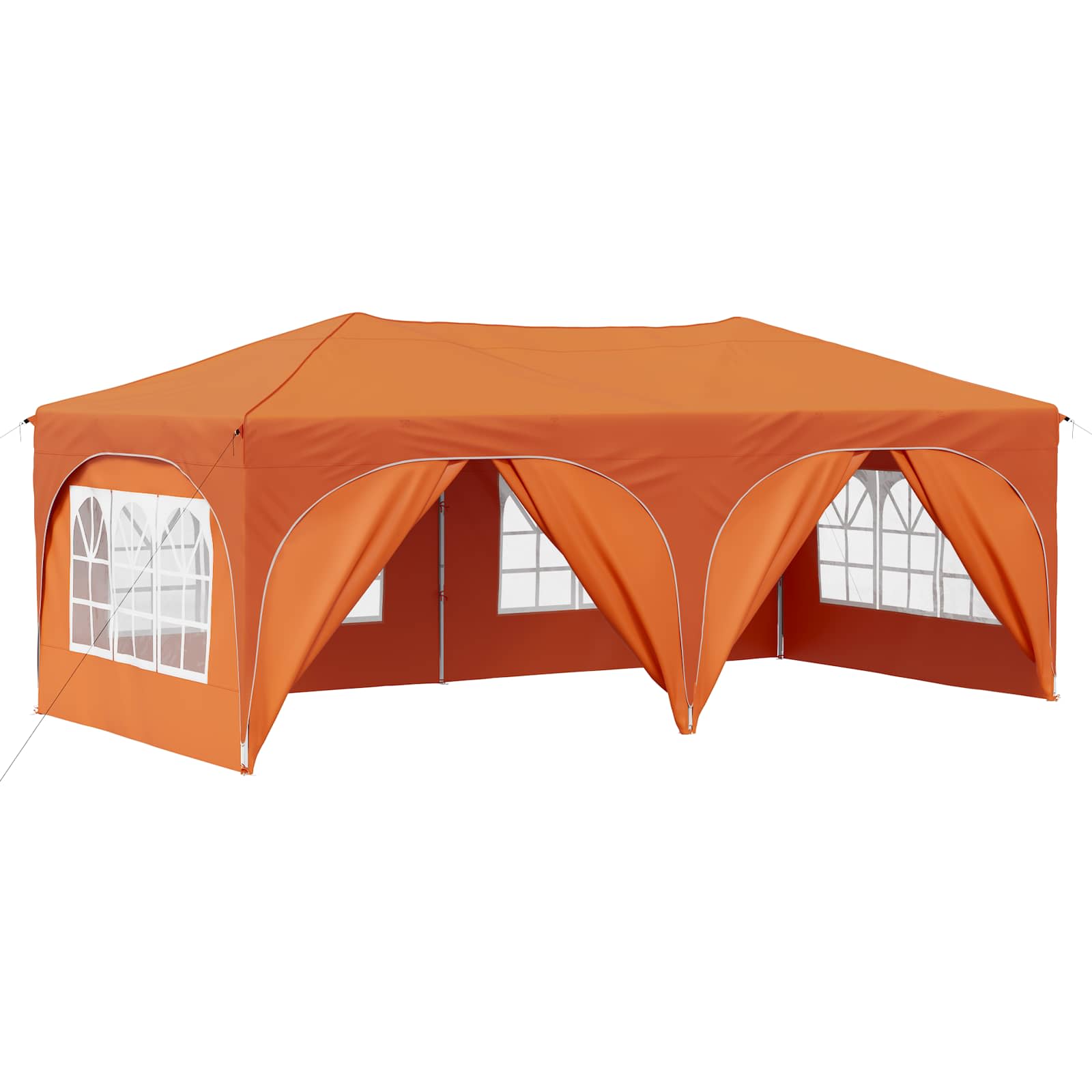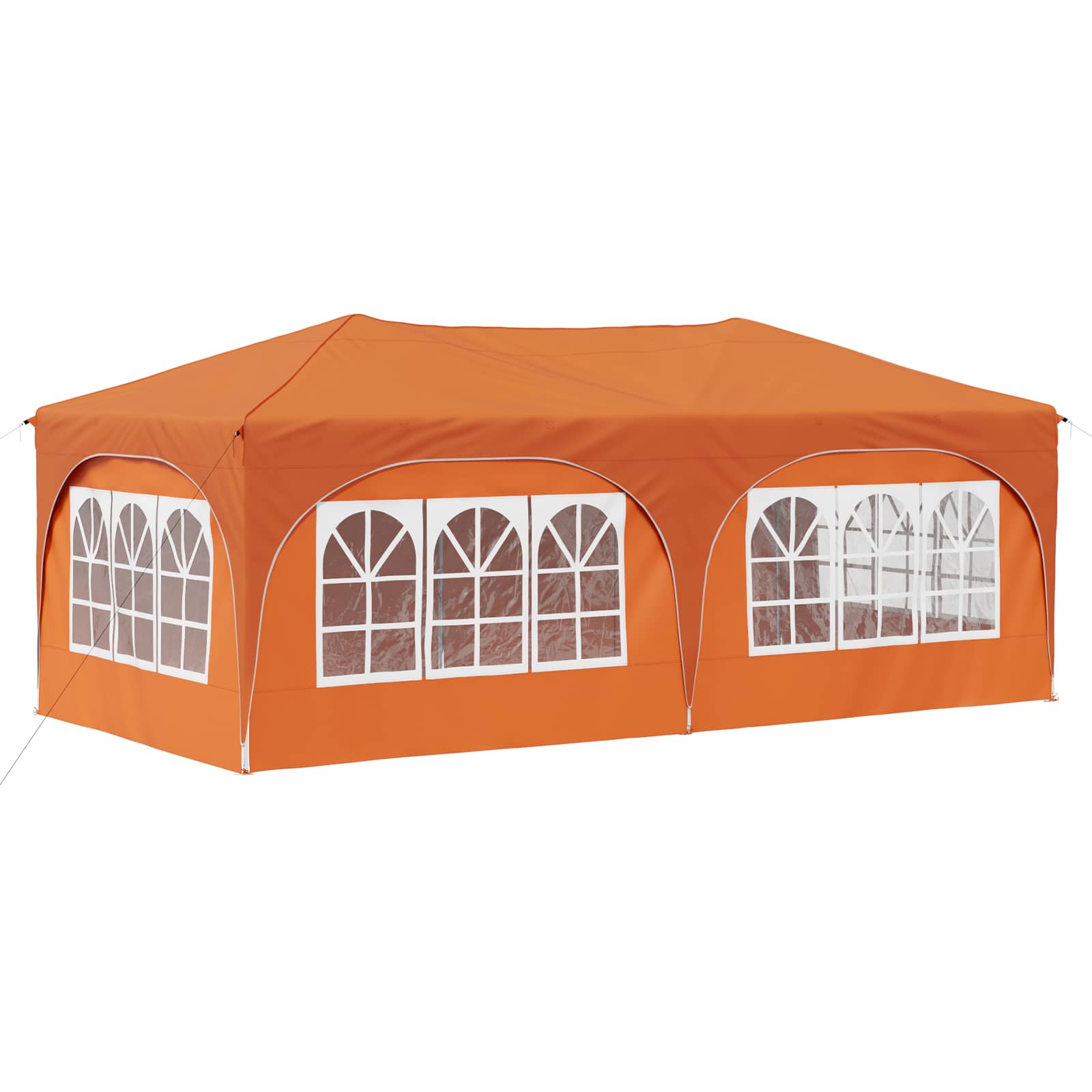 Ta večnamenski šotor za zabave bo vaše zunanje dogodke spremenil v nepozabne izkušnje. Z vrhunskim Oxford tkanjem daje sodoben pridih, s čistimi linijami in funkcionalnostjo. Ne glede na to, ali organizirate vrtnarsko zabavo, poroko ali kakšen večji zunanji dogodek, ta šotor nudi zaščito in prijetno vzdušje. Z veliko pokritostjo in elegantnim dizajnom kombinira stil in funkcionalnost ter izboljšuje vsak dogodek s svojo prisotnostjo. Trajna Oxford tkanina: Glavni material šotora, Oxford tkanina, zagotavlja odlično odpornost proti vremenskim vplivom. Odlikujejo jo vodoodporne lastnosti in UV zaščita, kar omogoča, da vaš prostor pod šotorom ostane udoben in zaščiten pred soncem in rahlim dežjem. Prilagoditev višine: Šotor je mogoče prilagoditi na tri različne višine, kar omogoča fleksibilno zaščito za različne tipe dogodkov. Ne glede na to, ali je to intimno srečanje ali velika prireditev, prilagoditev višine doda uporabnost in optimalno pokritost. Obsežna oprema: Vsebuje 4 vrvice proti vetru in 8 zemeljskih žebljev, kar zagotavlja stabilnost in odpornost na veter. Enostavna postavitev je zasnovana za dva, kar poenostavi proces in je priročna. Hitra postavitev: Ta šotor je opremljen z mehanizmom za hitro postavitev, kar odpravlja dolge postopke postavitve. To je super za gostitelje, ki želijo prihraniti čas in energijo ter hitro pripraviti prostor za goste. Navodila za oskrbo: Da ohranite šotor v dobrem stanju, se izogibajte grobim kemikalijam. S pravilno oskrbo bo material in struktura dolgo vzdržala, kar omogoča dolgotrajno uživanje pri različnih dogodkih. Pri največjem raztezanju ogrodja ne prekrivajte blaga. V nasprotnem primeru se bo blago pretrgalo. Za stabilizacijo vsake noge je veliko bolje uporabiti votlo opeko. Izdelek ni primeren za vremenske razmere, kot so močan veter, sneženje in ekstremne vremenske razmere. Nekateri deli lahko vsebujejo ostre robove, zato po potrebi nosite zaščitne rokavice. Pred sestavljanjem preverite, ali imate vse dele. Otroke in živali naj bodo stran od območja montaže. Pred začetkom se prepričajte, da imate dovolj prostora za razporeditev delov. Ne sestavljajte ali razstavljajte med močnim vetrom. Vse vire ognja in toplote hranite stran od šotora.