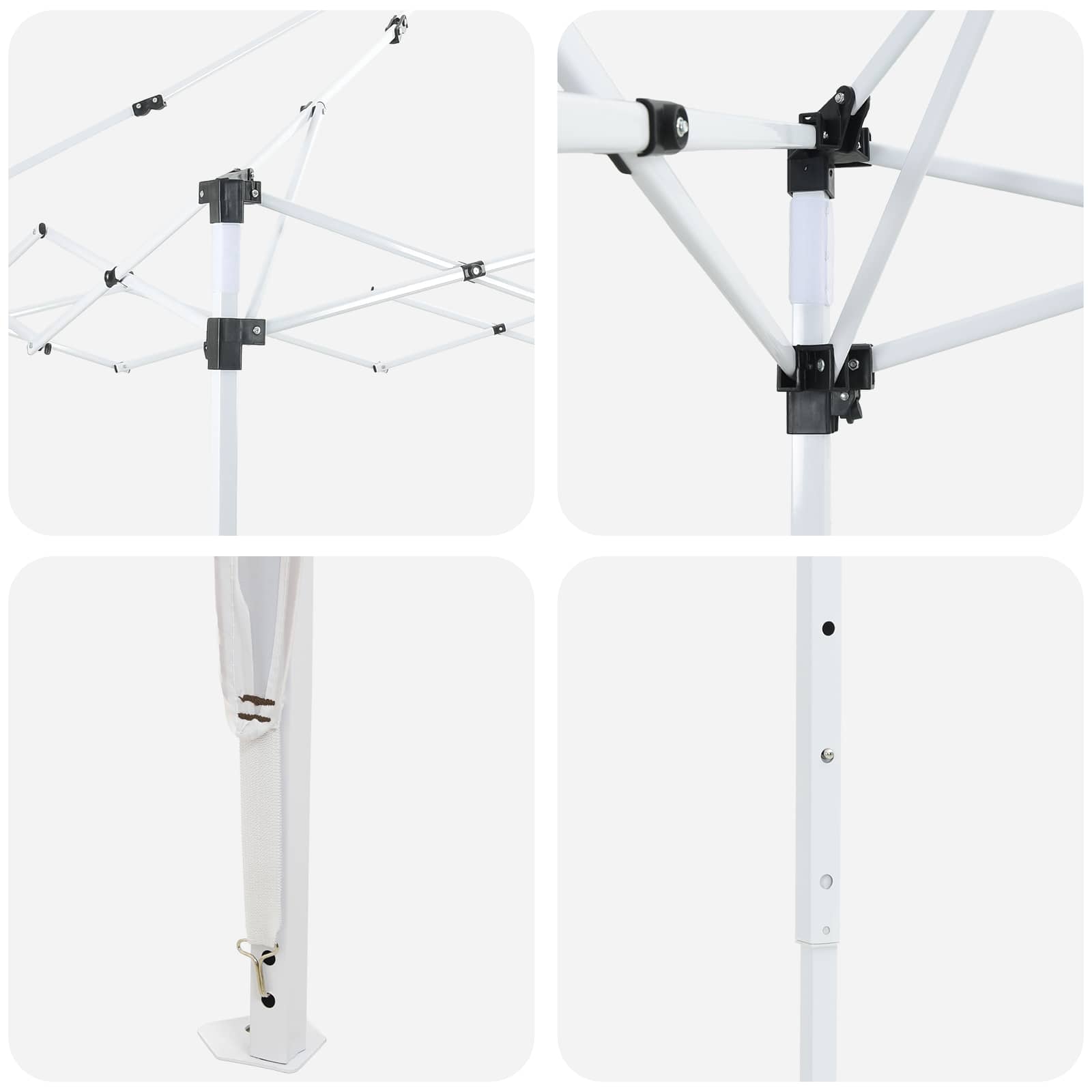 Oxford pop-up zabavni šotor je odlična rešitev za zunanje dogodke, ki ponuja moderno zavetje z dovolj prostora. Njegov čist dizajn se brez težav prilega v vsak vrt. Ta šotor je idealen za dogodke in spremeni vsak zunanj prostor v živahno prizorišče. Njegova privlačna podoba dviguje vzdušje, kar ga dela odličnega za poroke, zabave in druge zunanje dogodke, kjer lahko vaši gostje uživajo na prostem. Materiali: Narejen iz Oxford materiala, znanega po trpežnosti in vodoodpornosti, ta šotor zagotavlja dolgo življenjsko dobo in UV zaščito, kar uporabnikom omogoča varnost pred soncem med dogodki. Njegova konstrukcija je iz prašno lakiranega jekla, kar zagotavlja stabilnost. Vsebuje Komponente: V paketu so vsi potrebni elementi za postavitev, vključno s pop-up šotorom, štirimi 3,5-metrskimi vrvicami in osmimi žeblji. To zagotavlja varno uporabo in udobno doživetje za vse. Funkcije / Oblika / Načrt: Ta šotor se ročno nastavi na tri različne višine, kar omogoča prilagoditev potrebam dogodkov. Njegova moderna zasnova se prilega vsaki priložnosti, kar ga dela vsestranskega. Priporočene Uporabe: Ta šotor je idealen za zunanje prireditve, poroke, zabave in korporativne dogodke, saj ponuja prijetno zavetje. Njegova prilagodljivost pa ga dela primernega tako za zasebne kot javne dogodke. Oskrba in Vzdrževanje: Da bi ohranili šotor v dobrem stanju, se izogibajte močnim kemikalijam pri čiščenju. Preprosto vzdrževanje podaljšuje življenjsko dobo šotora za različne dogodke. Pri največjem raztezanju ogrodja ne prekrivajte blaga. V nasprotnem primeru se bo blago pretrgalo. Za stabilizacijo vsake noge je veliko bolje uporabiti votlo opeko. Izdelek ni primeren za vremenske razmere, kot so močan veter, sneženje in ekstremne vremenske razmere. Nekateri deli lahko vsebujejo ostre robove, zato po potrebi nosite zaščitne rokavice. Pred sestavljanjem preverite, ali imate vse dele. Otroke in živali naj bodo stran od območja montaže. Pred začetkom se prepričajte, da imate dovolj prostora za razporeditev delov. Ne sestavljajte ali razstavljajte med močnim vetrom. Vse vire ognja in toplote hranite stran od šotora.