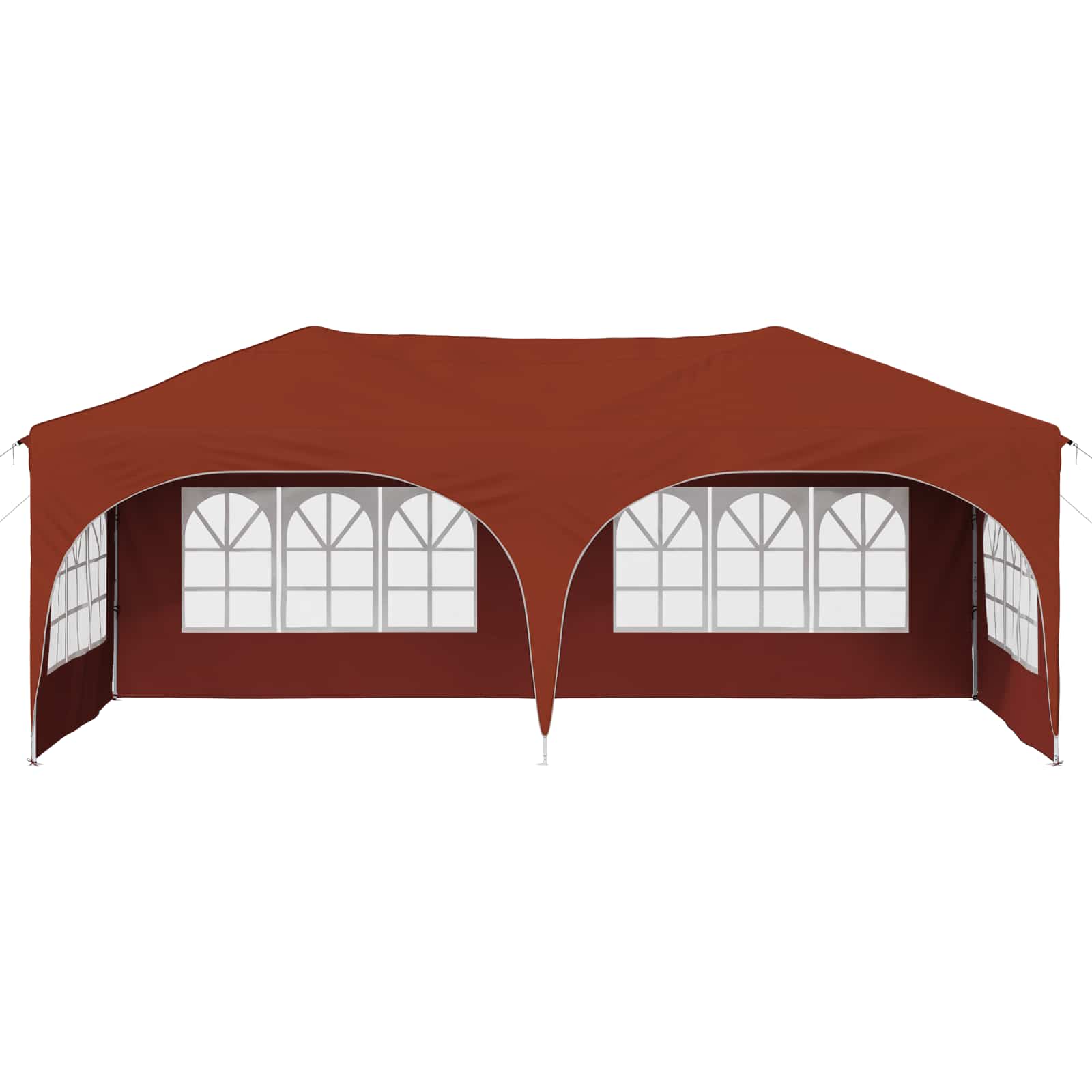 Ta večnamenski šotor za zabave bo vaše zunanje dogodke spremenil v nepozabne izkušnje. Z vrhunskim Oxford tkanjem daje sodoben pridih, s čistimi linijami in funkcionalnostjo. Ne glede na to, ali organizirate vrtnarsko zabavo, poroko ali kakšen večji zunanji dogodek, ta šotor nudi zaščito in prijetno vzdušje. Z veliko pokritostjo in elegantnim dizajnom kombinira stil in funkcionalnost ter izboljšuje vsak dogodek s svojo prisotnostjo. Trajna Oxford tkanina: Glavni material šotora, Oxford tkanina, zagotavlja odlično odpornost proti vremenskim vplivom. Odlikujejo jo vodoodporne lastnosti in UV zaščita, kar omogoča, da vaš prostor pod šotorom ostane udoben in zaščiten pred soncem in rahlim dežjem. Prilagoditev višine: Šotor je mogoče prilagoditi na tri različne višine, kar omogoča fleksibilno zaščito za različne tipe dogodkov. Ne glede na to, ali je to intimno srečanje ali velika prireditev, prilagoditev višine doda uporabnost in optimalno pokritost. Obsežna oprema: Vsebuje 4 vrvice proti vetru in 8 zemeljskih žebljev, kar zagotavlja stabilnost in odpornost na veter. Enostavna postavitev je zasnovana za dva, kar poenostavi proces in je priročna. Hitra postavitev: Ta šotor je opremljen z mehanizmom za hitro postavitev, kar odpravlja dolge postopke postavitve. To je super za gostitelje, ki želijo prihraniti čas in energijo ter hitro pripraviti prostor za goste. Navodila za oskrbo: Da ohranite šotor v dobrem stanju, se izogibajte grobim kemikalijam. S pravilno oskrbo bo material in struktura dolgo vzdržala, kar omogoča dolgotrajno uživanje pri različnih dogodkih. Pri največjem raztezanju ogrodja ne prekrivajte blaga. V nasprotnem primeru se bo blago pretrgalo. Za stabilizacijo vsake noge je veliko bolje uporabiti votlo opeko. Izdelek ni primeren za vremenske razmere, kot so močan veter, sneženje in ekstremne vremenske razmere. Nekateri deli lahko vsebujejo ostre robove, zato po potrebi nosite zaščitne rokavice. Pred sestavljanjem preverite, ali imate vse dele. Otroke in živali naj bodo stran od območja montaže. Pred začetkom se prepričajte, da imate dovolj prostora za razporeditev delov. Ne sestavljajte ali razstavljajte med močnim vetrom. Vse vire ognja in toplote hranite stran od šotora.